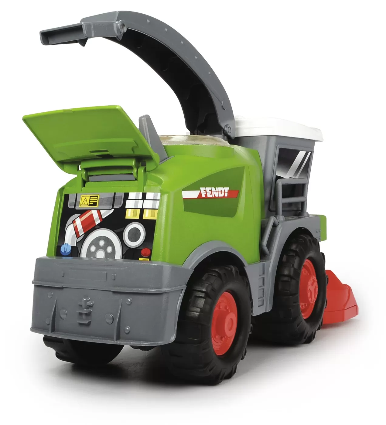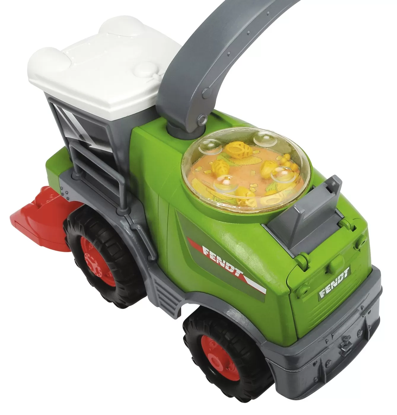 Bratul pivotant pentru incarcarea recoltei este si un maner de transport care este perfect adaptat manutelor celor mai mici. Designul obisnuit, prietenos si fericit, cu ochi mari si forme rotunjite, asigura distractia maxima si multe ocazii de a descoperi lumea.
