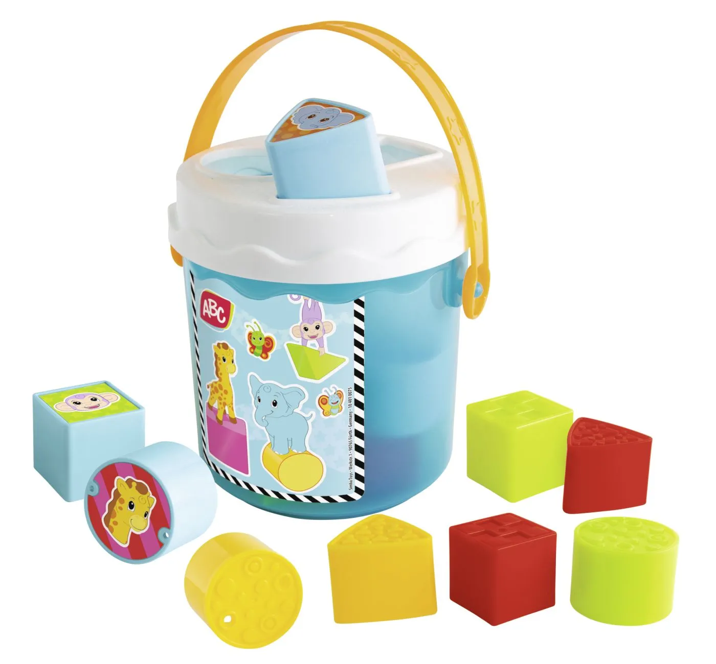 Pe galeata de sortare colorata ABC sunt reprezentate motive cu animale dragute, iar in capac este integrat un joc de sortare cu trei forme diferite. Partile de conectare colorate se potrivesc doar in forma corespunzatoare si pot fi indepartate din nou prin ridicarea capacului. Jocul ii ajuta pe cei mici sa promoveze coordonarea mana-ochi si intelegerea culorilor si a formelor. Potrivit pentru copii cu varsta de 12 luni si peste.
