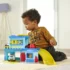 Sectie de politie cu rampa de pornire si platforma rotativa pentru masini, lansator de masini, usa de garaj cu deschidere si usa care se deschide spre camere. Setul include si 2 masinute.