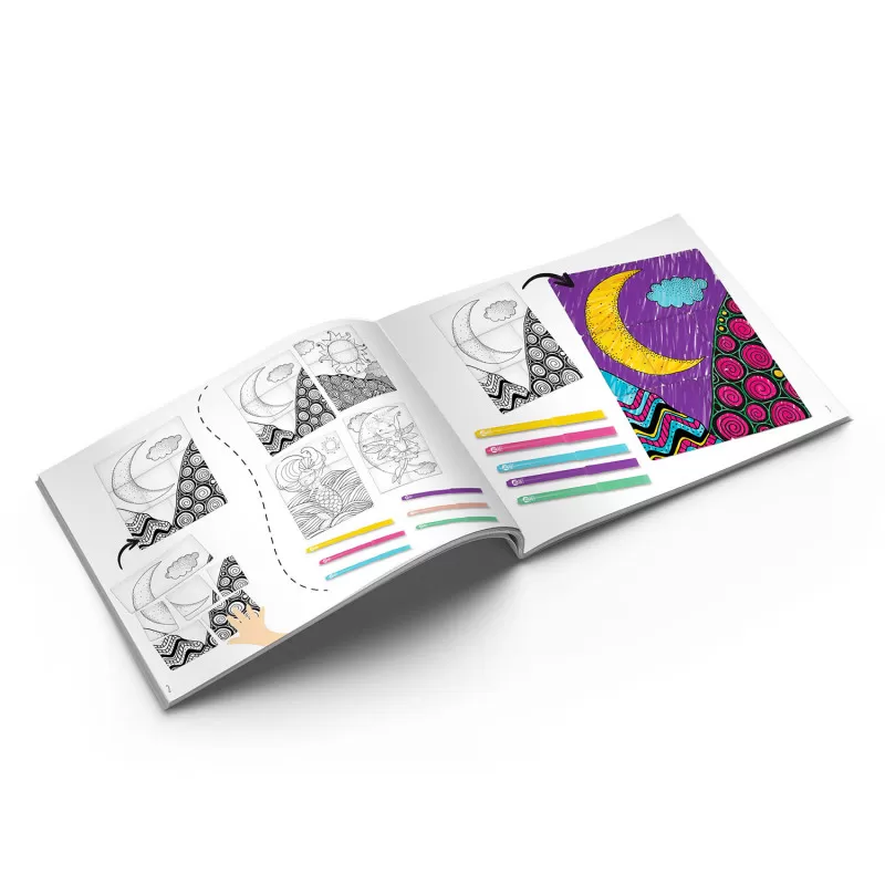 Set de pictura cu puzzle-uri care ii ajuta pe copii sa-si exercite observatia, imaginatia si gandirea creativa. Desenati toate piesele puzzle-ului, apoi alaturati-le si creati imaginea. Contine 2 puzzle-uri cu doua fete (cu 6 piese mari de diferite dimensiuni), 6 markere si un ghid de culoare, detaliat cu imagini pas cu pas pentru a obtine un rezultat deosebit.