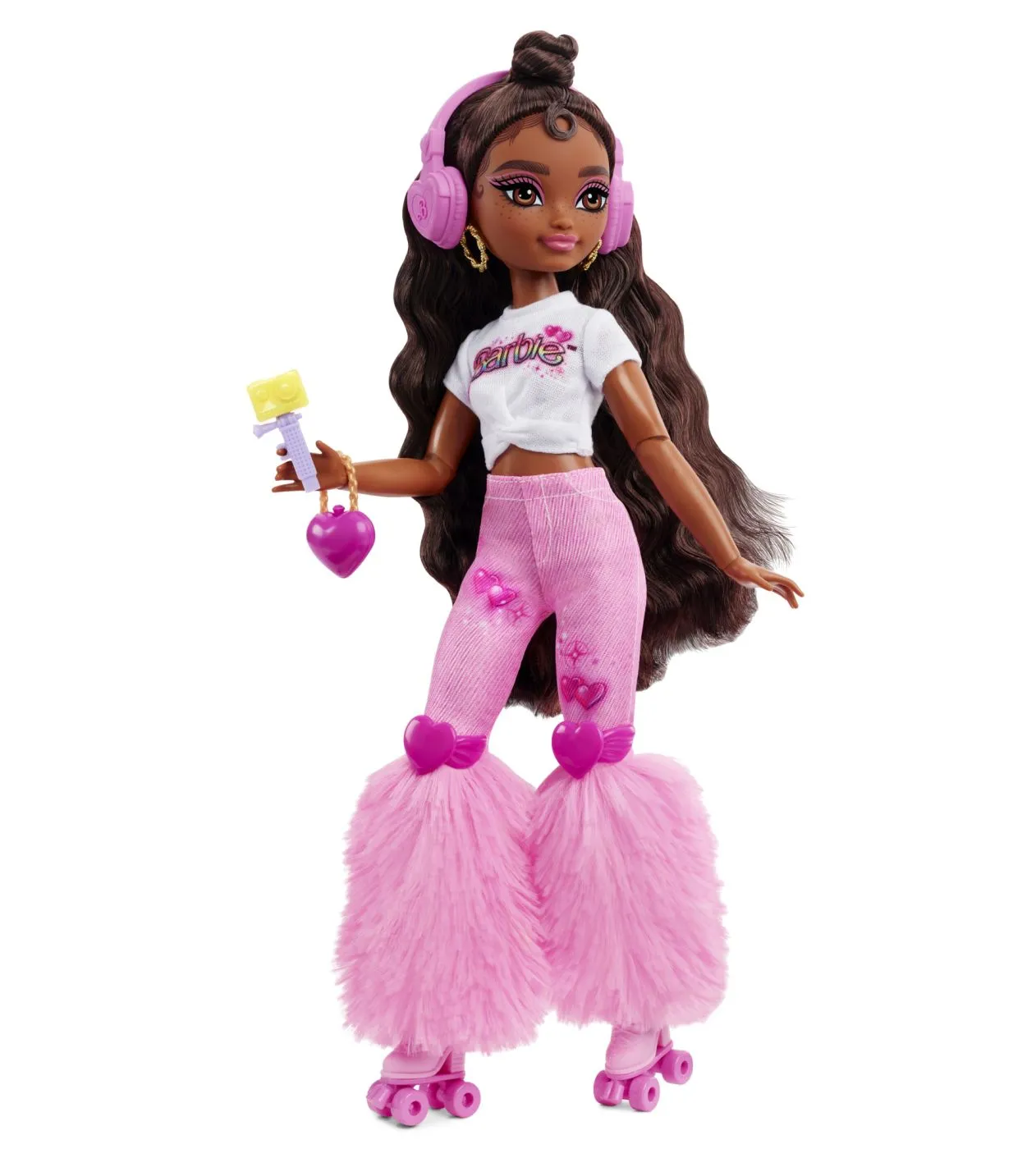 Papusa Barbie Brooklyn din colectia Barbie Dream Besties este gata de distractie pe role! Cu o tinuta moderna, plina de culoare si role super cool, Barbie Brooklyn aduce energia unei petreceri pe roti direct in jocul copiilor. Accesoriile stilate si detaliile realiste o fac perfecta pentru ore intregi de joaca creativa. Inspirata de prietenie, miscare si voie buna, este partenera ideala pentru aventuri pline de zambete! Papusa Barbie Dream Besties are un nou hobby patinajul cu role! Cu un design vesel si patine adorabile, Papusa este pregatita sa porneasca intr-o noua aventura. Viseaza sa aiba propria emisiune despre mancare si calatorii, asa ca poarta mereu accesorii tematice precum un aparat foto, o poseta, o inghetata si un telefon. Papusa este articulata si vine cu haine detasabile un tricou si pantaloni roz cu inimioare. Are parul lung, cret si negru, accesorizat cu agrafe detasabile care ii evidentiaza personalitatea entuziasta si gata de distractie!