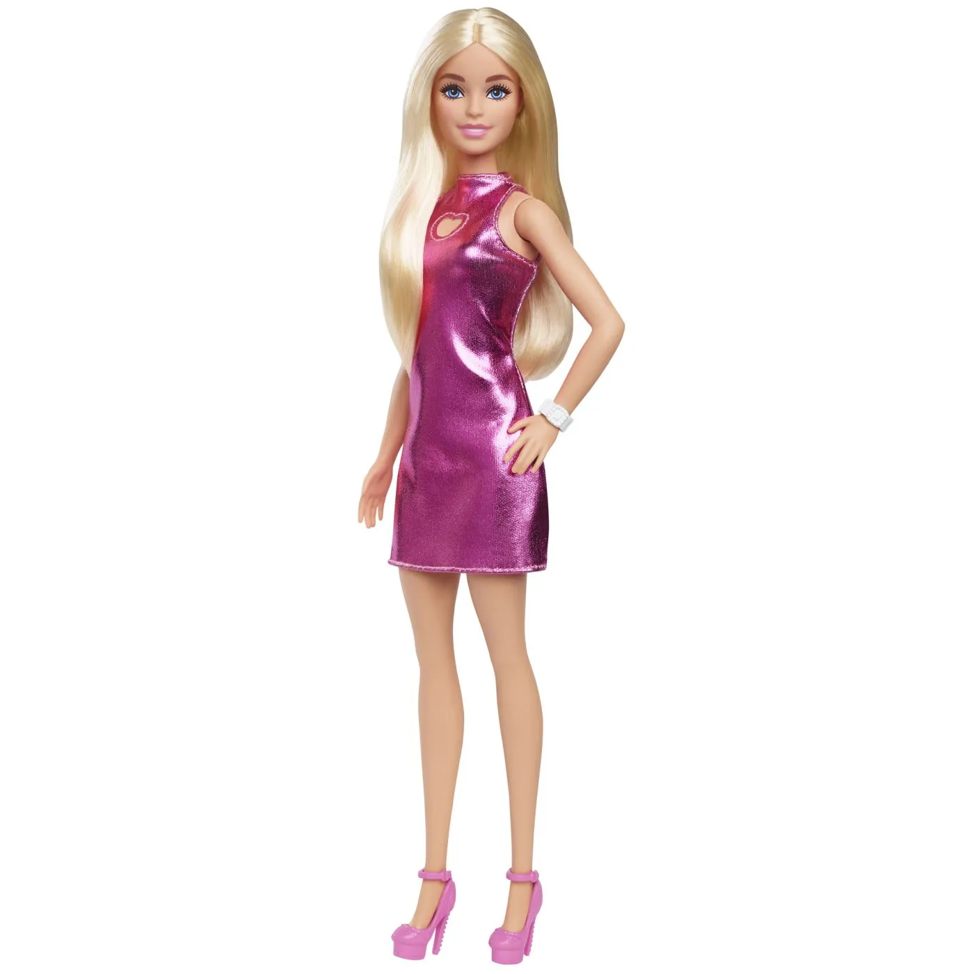 Fashionistas este una dintre cele mai indragite colectii Barbie, oferind o gama larga de papusi cu diferite stiluri si accesorii, introducand conceptul de diversitate si acceptare in randul fetelor. Aceasta colectie include papusi cu diferite tipuri de siluete, tonuri de piele, culori de ochi si par, astfel fetele nu se vor plictisi niciodata si isi vor gasi papusa asemanatoare stilului lor. Papusile au stilul lor propriu, inspirat de ultimele tendinte din moda si vin cu o tinuta completa, incaltaminte si accesorii fabuloase. Hainutele sunt confectionate astfel incat se pot potrivi oricarei papusi din gama Fashionistas. Descopera fiecare papusa Barbie din colectia Barbie Fashionistas si exploreaza lumea minunata a modei! Aceasta papusa Barbie din gama Fashionistas are parul blond, desprins. Pantofi roz cu toc complementeaza perfect aspectul sau. Rochia ei roz metalizat ii scoate in evidenta personalitatea si adauga un plus de eleganta tinutei ei.