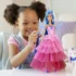 Papusa Barbie unica, inspirata de personajul din Barbie A Touch of Magic, este o adevarata bijuterie in colectia ta de jucarii. Papusa are un unicorn inaripat, care o face sa fie cu adevarat speciala.Rochia lunga a papusii este absolut fermecatoare, avand un corset roz perlat si o fusta cu etajere care creeaza o aparitie spectaculoasa.Aspectul stralucitor al papusii este completat de nuante de albastru safir, nu doar pentru a-si celebra cea de-a 65-a aniversare a lui Barbie, ci si pentru a aduce o nota magica intregii povesti.Accesoriile magice ale papusii, cum ar fi bentita de unicorn, aripile detasabile de safir si coada de unicorn, incurajeaza jocul imaginativ si povestile pline de farmec.Copiii se pot bucura de momente de ingrijire a parului papusii, folosind peria speciala cu nuante de bijuterie. Apoi, isi pot lasa imaginatia sa zboare si sa creeze povesti incredibile alaturi de aceasta papusa unica.