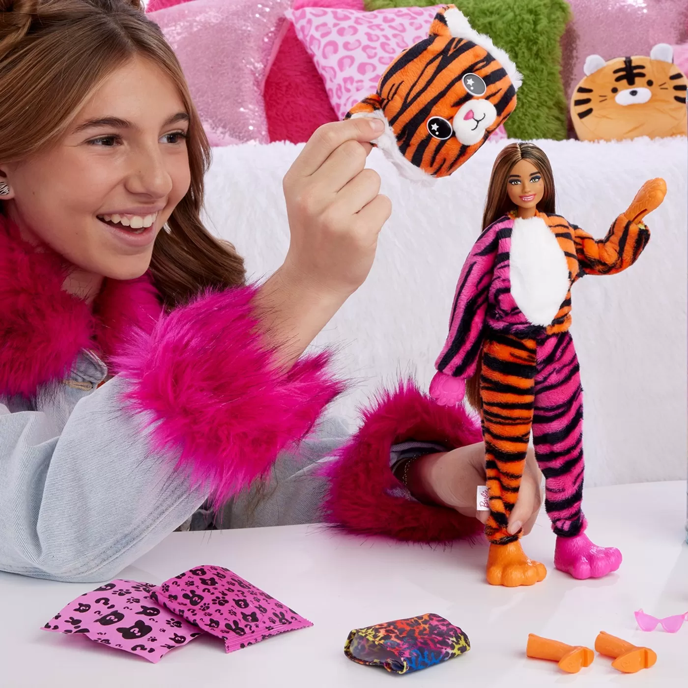 Papusile Barbie® Cutie Reveal&trade Jungle Series ofera cea mai draguta experienta de unboxing cu 10 surprize! Descoperiti un elefant fermecator, un tigru indragibil, un tucan stralucitor sau o maimuta obraznica, apoi scoateti costumul de plus pentru a dezvalui o papusa Barbie® cu par lung si colorat. Ce papusa vei dezvalui? Fiecare papusa Barbie® vine cu forme stralucitoare pe fata. Descopera mai multe surprize de deschis, cum ar fi ochelari de soare, o fusta sau pantaloni scurti si un mini animal de companie care se potriveste cu costumul papusii. Întoarceti partea superioara a plusului pentru o jacheta din lana si intoarceti capul pentru un pat pentru animale de companie. Apa rece ca gheata adauga si mai multa dragalasenie cu transformarile de schimbare a culorii pe papusa si mini animal de companie apa calda le schimba inapoi pentru distractie repetata! Copiilor le va placea sa descopere toate surprizele dragute din aceasta serie Barbie® Cutie Reveal&trade inspirata din jungla. Include papusa in costum de animal si 10 surprize. Fiecare papusa se vinde separat, in functie de disponibilitate. Papusile nu pot sta singure. Culorile si decoratiunile pot varia. Acest pachet contine o papusa si o maimutica.