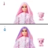 Cu 10 surprize intr-un singur pachet, papusile Barbie Cutie Reveal Cozy Cute Tees Series ofera cea mai draguta experienta de despachetare cu prieteni animale de plus, moda si distractie transformatoare! Ce papusa vei dezvalui?Desfaceti cutia pentru a gasi un ursulet de plus roz si dragalas, purtand un tricou colorat cu un mesaj inspirational &bdquoDragoste&rdquo si care ascunde inauntru o papusa Barbie.Ridica capul costumului si dezvaluie papusa Barbie articulabila, cu par lung, roz cu dungi violet, 9 articulatii.Deschide cele 4 pungi surpriza pentru a gasi moda si accesorii — cum ar fi o fusta din satin, o bentita Barbie, o pereche de pantofi, un pieptene cu burete si un mini plus adorabil asortat.Copiii se pot imbraca si coafa papusa Cutie Barbie inversand partea de sus a costumului pentru a gasi o jacheta din lana super moale, cu imprimeu animal. Capul costumului se transforma intr-un pat si pentru mini prietenul de companie!Foloseste apa rece ca gheata pentru a transforma dunga de culoare a papusii Barbie si pentru a &bdquodeschide&rdquo si &bdquoinchide&rdquo ochii mini-animalului de companie schimba-te inapoi cu apa calda. Repetati din nou si din nou!