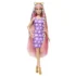Dedicata tuturor lucrurilor legate de par, colectia Barbie Fun &amp Fancy Hair prezinta papusi glam cu coafuri colorate. &Icircn plus, cele 10 piese de moda si styling incluse permit personalizarea fara sfarsit! Papusa Barbie&reg are 21 cm de par blond foarte lung, care poate fi aranjat, cu note fantastice de culoare! Ea poarta o minirochie roz lucios, cu cercei albi si pantofi aurii cu bretele. Copiii isi pot transforma cu usurinta aspectul cu moda mix-and-match! Vine cu o rochie suplimentara imprimata cu grafica de pisici, o pereche suplimentara de tocuri si o poseta. Accesoriile de styling includ o bentita cu urechi de pisica cu extensii de par, o clema cu o extensie de par, doua barete, o bentita cu cocuri de par si un set de legaturi de par. Odata ce copiii si-au creat coafurile, pot folosi peria pentru a pieptana treptele papusii Barbie si a repeta ore in sir de distractie. De la updouri colorate la impletituri stratificate, posibilitatile sunt nesfarsite! Papusile Barbie Fun &amp Fancy Hair sunt un cadou grozav pentru copiii de la 3 ani in sus, in special pentru cei carora le place sa exploreze noi look-uri, coafuri si moda! Include papusa Barbie cu doua rochii, 2 perechi de pantofi, 1 perie si piese de styling asortate.