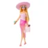 Cu picioarele in nisip si o inghetata in mana, aceasta papusa Barbie® blonda are tot ce ii trebuie pentru o zi relaxanta in Malibu. Poarta un costum de baie roz de vara si o geanta plina cu accesorii de plaja. Baietii si fetele cu varsta de 3 ani in sus se vor distra de minune cu aceasta papusa Barbie® cu tematica de plaja. Culorile si decorarea pot varia.Relaxeaza-te pe plaja cu aceasta papusa Barbie®. tinuta ei cool si accesoriile tematice ii vor inspira pe baieti si fete sa viseze tot felul de povesti de vara sub soare.Accesoriile suplimentare de stil includ o palarie cu boruri largi, ochelari de soare cu ochi de pisica, un colier de aur si diverse bratari.Geanta roz este perfecta pentru depozitarea protectiei solare, rujului si smartphone-ului tau. Cornetul de inghetata cu menta se lipeste de mana pentru o pozitie realista.