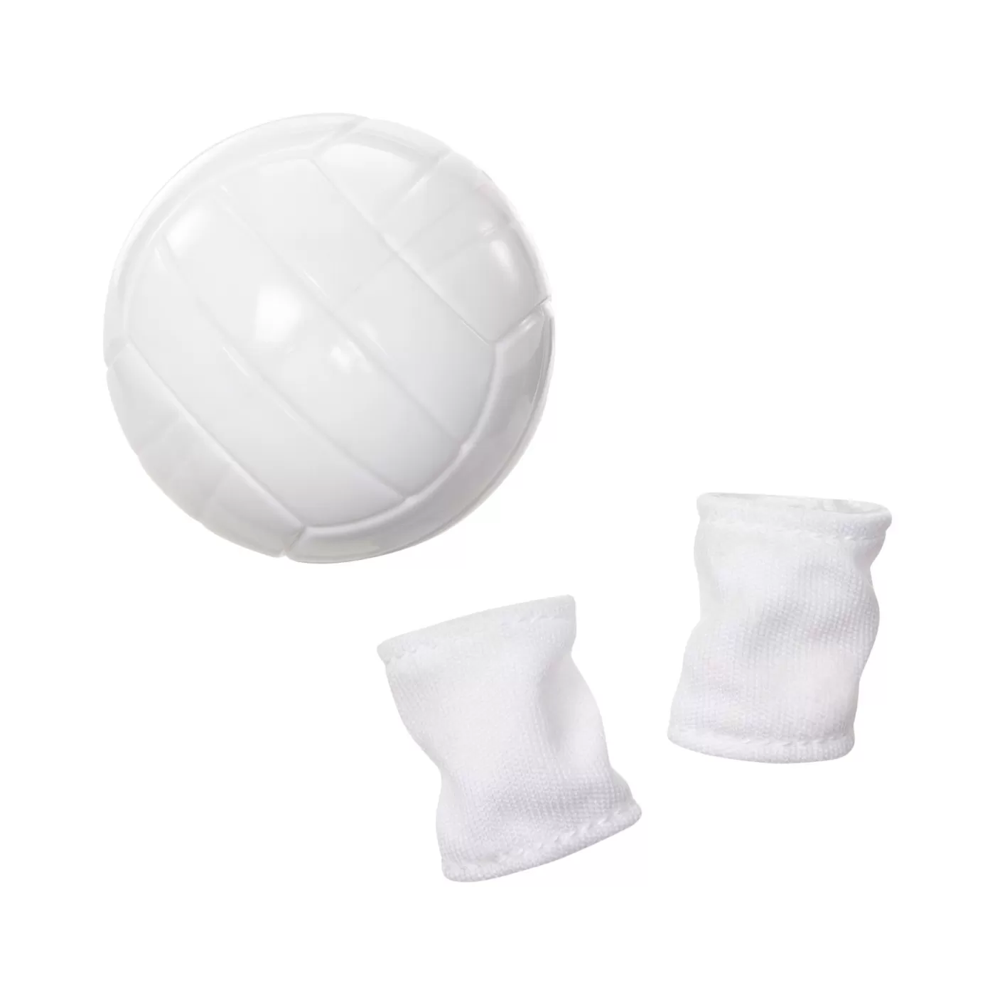 De aceasta data, Barbie le invita pe fetite la o zi de sport captivant in sala, pe terenul de volei. Frumoasa papusa cu parul lung si blond a ales haine potrivite pentru sport inspirata din realitate, ea poarta un tricou violet cu alb si pantaloni scurti violet.