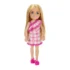 Papusile Barbie Chelsea vin cu pantofi si piese vestimentare detasabile. Creeaza povesti nenumarate cu scenarii diferite impreuna cu papusile Chelsea. Pentru scenarii creative achizitioneaza toate papusile Chelsea. Aceasta papusa se remarca prin farmecul ei si este imbracata intr-o frumoasa rochie roz cu carouri si imprimeu inflorat care o face sa straluceasca. Parul blond al papusii Chelsea este coafat lung si drept, iar papucii roz completeaza perfect look-ul sau fermecator.