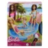 Scufunda-te in piscina cu Barbie! Aceasta piscina unica se umple si se goleste usor, oferind loc suficient pentru Barbie si prietenele ei (vandute separat). Este locul perfect pentru o petrecere de vara! Barbie poate aluneca pe tobogan sau se poate relaxa pe margininea piscinei. Cu culori stralucitoare si accesorii incredibile, aceasta piscina va inspira multe aventuri. Setul include doua racitoare, doua suporturi de pahare si un prosop colorat cu modele interesante, completand scena de vara. Barbie este pregatita pentru plaja in costumul sau de baie imprimat.