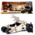 Macheta masinuta de metal cu licenta Batman, in culori de camuflaj. Mecanismul rotilor este freewheel. in set este inclusa o figurina Batman metalica. Portierele se pot deschide.
