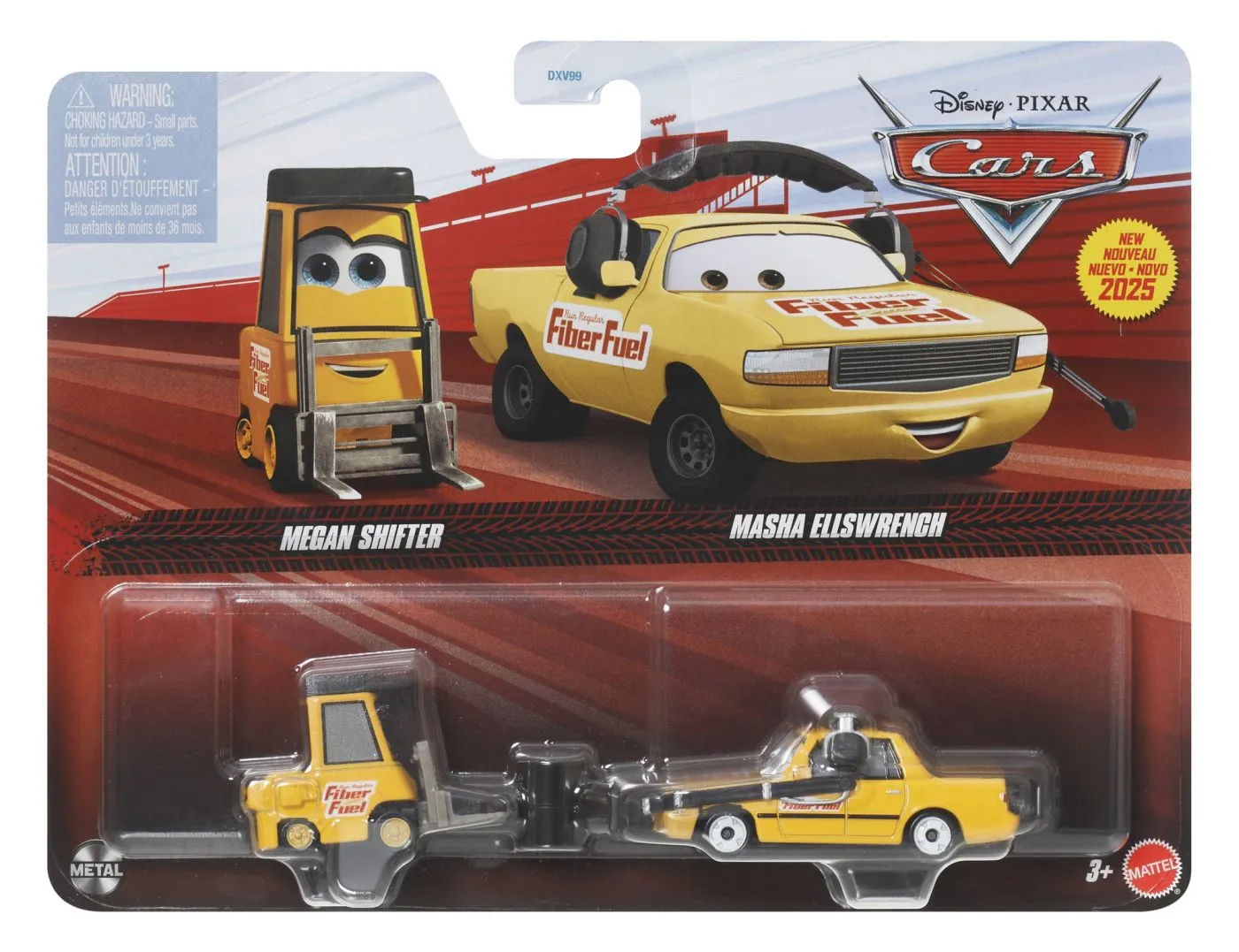 Cu noile masinute Cars cei mici se pot juca si repune in scena cursele din filmul Disney Cars. Masinutele metalice infatiseaza fidel personajele. Seturile Disney Pixar Cars 3 aduc in prim-plan personajele preferate ale animatiei! Fiecare vehicul este realizat la scara 1 la 55 si are un design unic, culori si detalii ca originalele. Copiii pot crea scenarii diferite si episoade de aventura folosind perechile de masini favorite! Machetele de masini sunt alegerile perfecte atat pentru copii, cat si pentru colectionari! Alegerea ideala pentru un cadou destinat copiilor ce indragesc masinile si drift-urile! Sa inceapa cursa! Acest pachet contine personajele Megan Shifter si Masha Ellswrench.