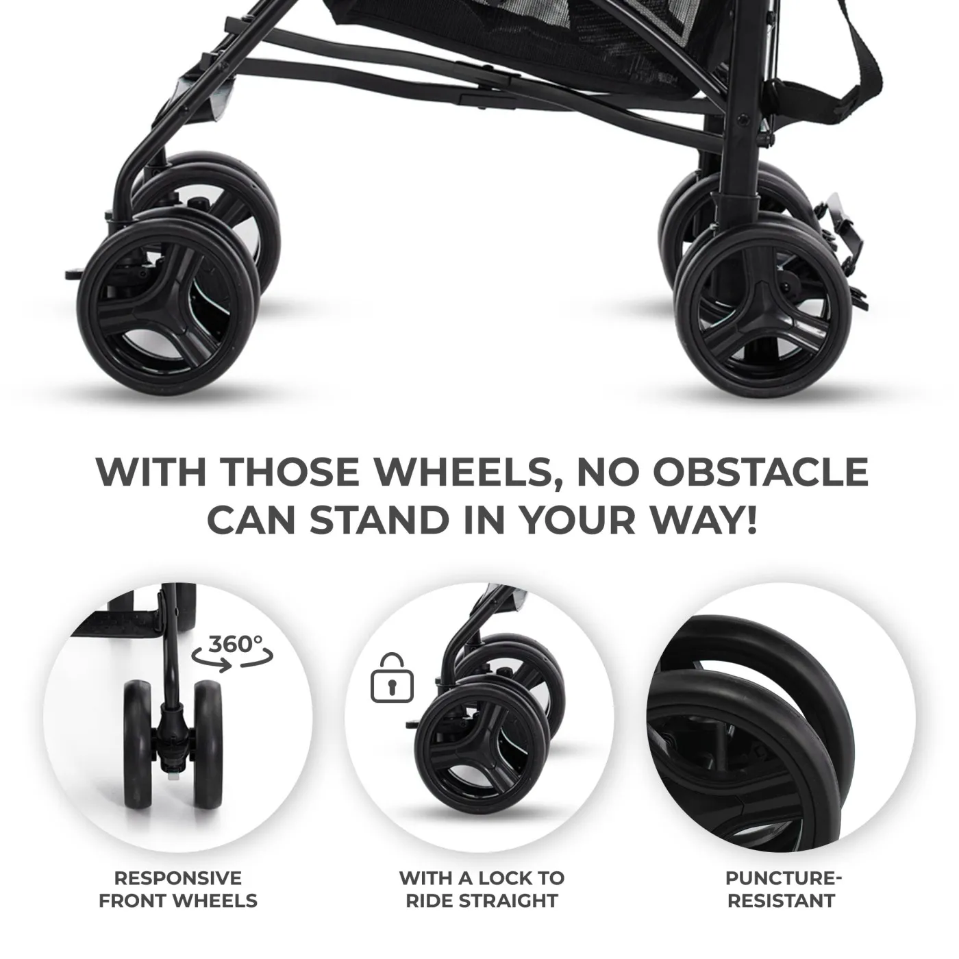 Carucior sport Kinderkraft TIK, tip umbrela, STONE BEIGE Cauti un carucior usor pe care il veti putea plia rapid pentru vacanta? Iata un carucior umbrela compact TIK STONE BEIGE! Cantareste doar 6,5 kg, ceea ce il face perfect pentru calatorii. Este nevoie doar de un moment pentru a plia TIK STONE BEIGE ca o umbrela si a-l pune in portbagajul unei masini. De asemenea, ii puteti gasi cu usurinta loc in tren sau in transportul public. Caruciorul TIK STONE BEIGE este un carucior nu numai pentru calatorii – va fi perfect si pentru plimbarile de zi cu zi. Este echipat cu sistem de ajustare treptata a spatarului in pozitia culcat intr-o clipa puteti regla spatarul si suportul pentru picioare, astfel incat copilul sa traga un pui de somn la aer curat. Nu trebuie sa pompati rotile usoare, rezistente la perforare si, daca este necesar, puteti bloca cele doua roti din fata pentru a circula pe terenuri mai dificile. Au sistem de amortizare, perfect pentru aleile din parc sau placile de pavaj inegale. in vacanta si in fiecare zi TIK STONE BEIGE este un carucior umbrela ideal pentru vacante si plimbari zilnice. Este foarte usor cantareste doar 6,5 kg si este extrem de usor de pliat. Caruciorul este echipat cu o curea de transport. Nu aveti acces la lift? Urcare pe scari in tren? Cu TIK STONE BEIGE nu este nicio problema! Pozitia culcat Copilul vrea sa traga un pui de somn in timpul plimbarii? Trebuie doar sa plasati spatarul in pozitie culcat si reglati suportul pentru picioare. Veti putea vizita in continuare, iar micutul se va odihni dupa o zi plina de evenimente. Copertina pliabila Pe langa un scaun confortabil, TIK STONE BEIGE are si o copertina rabatabila care va oferi copilului umbra si protectie impotriva vantului si a burnitei. Pe copertina este montata o viziera pentru contactul cu copilul, astfel incat sa puteti fi intotdeauna &rdquocu ochii pe el&rdquo. Roti fara pompare Rotile caruciorului sunt usoare si rezistente la intepaturi si nu trebuie pompate. Se vor descurca de minune in timpul vacantelor de tip city-break, in timpul odihnei intr-o statiune de vacanta sau in timpul plimbarilor pe strazile orasului. Puteti bloca rotile din fata pentru a conduce pe suprafete denivelate. Siguranta in timpul fiecarei plimbari Caruciorul umbrela TIK FOREST GREEN are curele reglabile in 5 puncte si o bara de siguranta moale care creeaza un spatiu sigur in jurul sezutului. Puteti ajusta cu usurinta centurile pe masura ce copilul in crestere, iar datorita protectiilor puteti fi sigur ca nu vor fi suparatoare pentru copil. in plus, TIK FOREST GREEN are doua frane pe rotile din spate – puteti folosi numai una din ele pentru a bloca in siguranta caruciorul. Cos sub carucior Sub carucior se afla un cos incapator cu o capacitate de incarcare de pana la 2 kg. Puteti pune acolo atat mici cumparaturi, cat si accesorii necesare in timpul unei plimbari, precum servetele umede, scutecele tetra sau jucarii. Fabricatie Cadru otel Roti spuma EVA invelis poliester Dimensiuni Pliat 106 x 28 x 30 cm Desfacut 79 x 47,5 x 104 cm Diametru roti 14,3 cm Greutate 6,5 kg