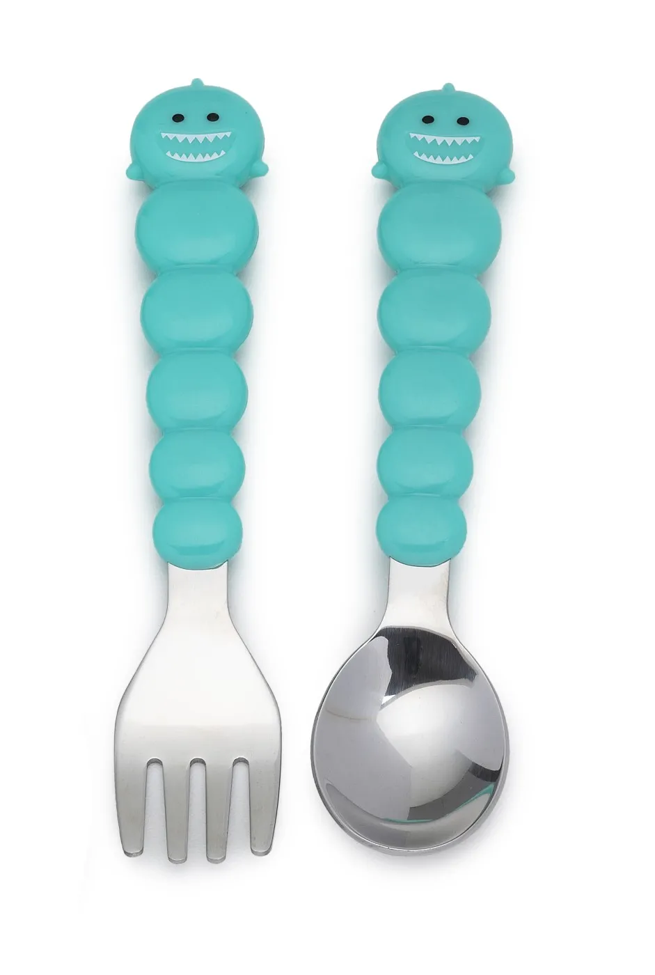Castronel din silicon cu capac animal și tacâmuri, Melii, model rechin Facem hrănirea independentă a copiilor să fie o distracție cu seturile noastre de castronele din silicon cu capac animal și tacâmuri, Melii, în culorile vibrante ale bulldogului, pisicii, rechinului ș…