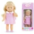 Mini Corolline Rosy este o papusa mica, cu pielea deschisa la culoare, de 20 cm, &bdquogata de oferit cadou&rdquo. Are un corp moale la atingere, complet din vinil, si un parfum delicat de vanilie. Ochii ei albastri sunt pictati pe fata, iar parul blond, lung si matasos este perfect pentru coafare usoara. Este imbracata intr-o rochie in carouri si poarta o pereche de pantofi mulati asortati,