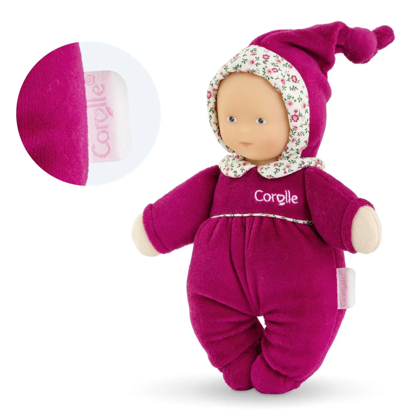 Prima papusa de joaca si prietena, papusa de plus de 20 cm este potrivita pentru copii inca din primele luni de viata si este fabricata dintr-un material foarte moale. De asemenea, are un clopotel in interior pentru a intari perceptia auditiva. Papusa este extra moale si, prin urmare, perfecta pentru a fi alintata, cuibarita si imbratisata. Parfum de vanilie caracteristic, toate papusile Corolle au un parfum placut si delicat de vanilie. De asemenea, pe papusa este cusuta o eticheta pentru inregistrarea numelui si adresei papusii in cazul in care se pierde. Se poate spala la masina, papusa poate fi spalata la masina la ciclu delicat.