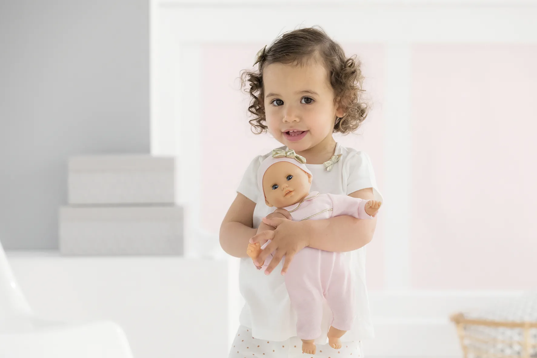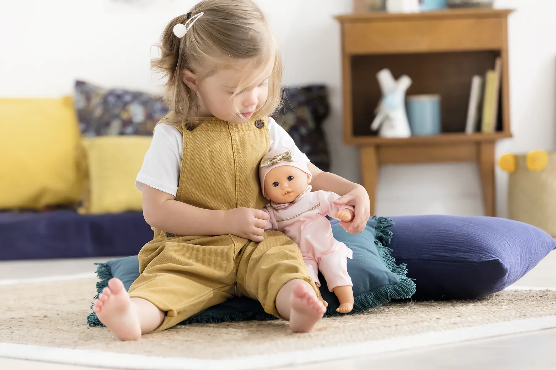 B&eacuteb&eacute Calin Manon este o papusa de 30 cm, cu corpul moale,articulat ca al unui bebelus adevarat, iar ochii sai albastri adormiti se inchid atunci cand este pus jos pentru un pui de somn. Fata, bratele si picioarele papusii sunt realizate din vinil moale la atingere, care este delicat parfumat cu vanilie.