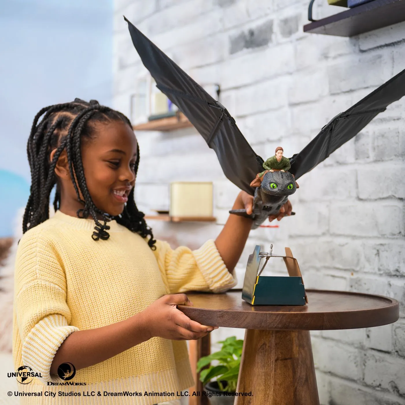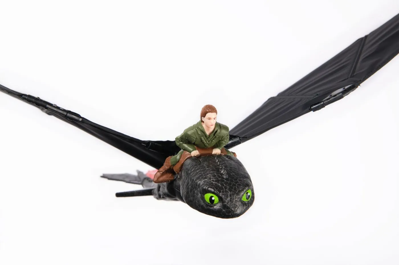 Ia-ti zborul cu Real Flying RC Toothless din How to Train Your Dragon. Aceasta jucarie dragon controlata de la distanta aduce aventura in casa ta si are aripi reale, realizate din material spumos usor si durabil si coada reglabila pentru a-i controla traiectoria de zbor. Odata asamblat, pregateste-te sa il vezi pe Toothless zburand in aer folosind telecomanda cu acceleratie usor de controlat pentru a mentine viteza. Include un controler de 2,4 GHz cu o raza de actiune de 76 de metri, astfel incat aventurierii, tineri si batrani, il pot comanda pe Toothless in aventuri epice. Obtine pana la 10 minute de zbor cu o singura incarcare. Foloseste ambalajul si cablul USB-C inclus ca statie de incarcare pentru RC Toothless pentru a continua distractia. Fie ca este vorba de o zi de nastere, o sarbatoare sau orice alta sarbatoare, aceasta figurina dragon este o optiune interesanta pentru fanii tineri pentru a inspira jocul imaginativ si aventurile eroice.