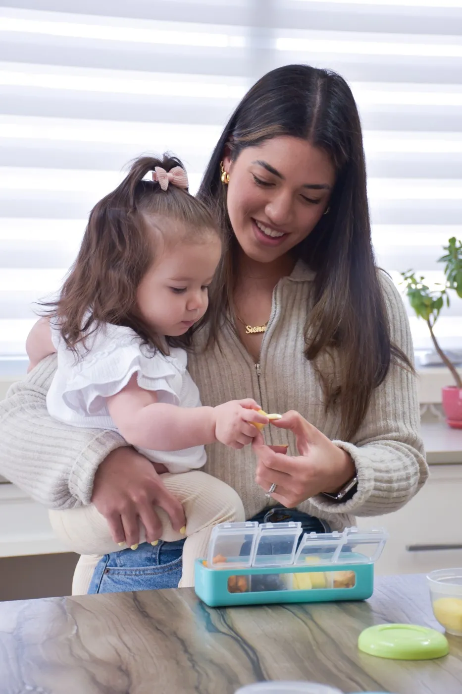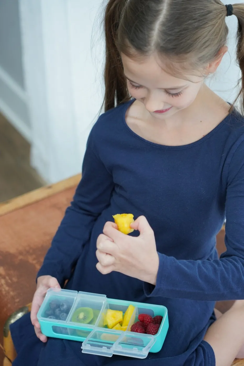Cutia noastra pentru gustari cu 4 compartimente este o joaca distractiva pe cutiile de pescuit, cu exceptia faptului ca a noastra este 100% sigura pentru alimente si conceputa special pentru ca copiii mici sa poata deschide si inchide cu usurinta. Pune o gustare diferita in fiecare compartiment pentru a face o gustare de calatorie. PATRU COMPARTAMENTE INDIVIDUALE Fiecare dintre cele 4 compartimente se deschid separat pentru a accesa individual fiecare gustare. Perfect pentru copiii de toate varstele, inclusiv pentru copiii mici si copiii pretentiosi, carora le place un sortiment din care sa aleaga la gustare si la pranz. UsOR DE DESCHIS si ÎNCHIS Usor pentru prescolari si copii sa deschida si sa inchida capacul transparent in mod independent. Nu ca nu ne place sa auzim &bdquoPot sa mai iau o gustare?&rdquo De 500 de ori pe zi, dar cu cutia noastra de gustari, copiii pot alterna intre gustari in mod independent. DEPOZITARE DE ARTa sI Mestesuguri Folositi acest recipient ca cos de organizare pentru a sorta si organiza obiecte de arta si mestesuguri, jucarii mici, piese libere, margele, bijuterii, cercei, pastile, truse de cusut, carlige, cuie, piulite, suruburi si accesorii electronice. FaRa BPA Containerele noastre de depozitare reutilizabile nu contin substante chimice daunatoare precum fara BPA, fara plumb, fara cadmiu, fara PVC si sunt 100% sigure pentru alimente. PORtII PERFECTE PENTRU COPII Cele 4 compartimente permit parintilor sa separe gustari, biscuiti, fructe/legume, branza etc. (pentru ca cerul fereste ca diferitele tipuri de alimente sa se atinga!). Dimensiuni ideale ale portiilor pentru copii mici si copii. Capacitatea celor 4 compartimente 110ml fiecare. Capacitate totala de 440 ml.
