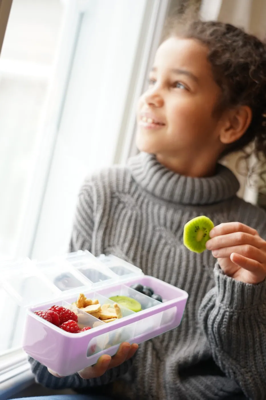 Cutia noastra pentru gustari cu 4 compartimente este o joaca distractiva pe cutiile de pescuit, cu exceptia faptului ca a noastra este 100% sigura pentru alimente si conceputa special pentru ca copiii mici sa poata deschide si inchide cu usurinta. Pune o gustare diferita in fiecare compartiment pentru a face o gustare de calatorie. PATRU COMPARTAMENTE INDIVIDUALE Fiecare dintre cele 4 compartimente se deschid separat pentru a accesa individual fiecare gustare. Perfect pentru copiii de toate varstele, inclusiv pentru copiii mici si copiii pretentiosi, carora le place un sortiment din care sa aleaga la gustare si la pranz. UsOR DE DESCHIS si ÎNCHIS Usor pentru prescolari si copii sa deschida si sa inchida capacul transparent in mod independent. Nu ca nu ne place sa auzim &bdquoPot sa mai iau o gustare?&rdquo De 500 de ori pe zi, dar cu cutia noastra de gustari, copiii pot alterna intre gustari in mod independent. DEPOZITARE DE ARTa sI Mestesuguri Folositi acest recipient ca cos de organizare pentru a sorta si organiza obiecte de arta si mestesuguri, jucarii mici, piese libere, margele, bijuterii, cercei, pastile, truse de cusut, carlige, cuie, piulite, suruburi si accesorii electronice. FaRa BPA Containerele noastre de depozitare reutilizabile nu contin substante chimice daunatoare precum fara BPA, fara plumb, fara cadmiu, fara PVC si sunt 100% sigure pentru alimente. PORtII PERFECTE PENTRU COPII Cele 4 compartimente permit parintilor sa separe gustari, biscuiti, fructe/legume, branza etc. (pentru ca cerul fereste ca diferitele tipuri de alimente sa se atinga!). Dimensiuni ideale ale portiilor pentru copii mici si copii. Capacitatea celor 4 compartimente 110ml fiecare. Capacitate totala de 440 ml.