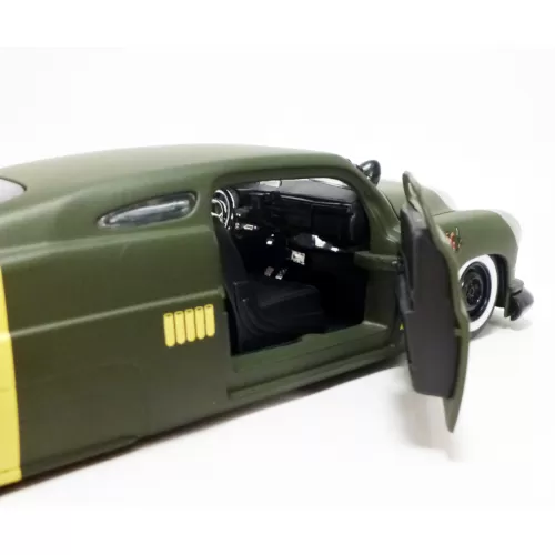 Masinuta de metal, Mercury, model 1951, freewheel, usile si capota se pot deschide. Masinuta este construita la o scara de 124. Setul include si o figurina de metal, 7 cm