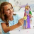 Aceasta papusa Rapunzel, inspirata de printesa vibranta si creativa din Disney's Tangled, are par foarte lung si atat de multe moduri de a-l coafa! Setul include 2 extensii de par care isi pot schimba culoarea la apa calda si o multime de accesorii pentru coafarea parului pentru toate look-urile de basm pe care si le pot imagina copiii! Papusa nu poate sta singura. Culorile si decoratiunile pot varia.Cu parul foarte lung si o multime de piese de coafat, copiilor le va placea sa pregateasca aceasta papusa Rapunzel pentru cea mai buna zi a ei!Include 9 piese de coafat si o perie de tip &bdquotigaie&rdquo pentru a recrea coafuri din film sau din imaginatia copiilor.Setul include silueta Pascal, prietenul adorabil cameleon al lui Rapunzel, care se poate fixa de bratul ei.La fel ca in film, aceasta papusa articulata Rapunzel poarta o diadema si rochia ei mov, cu o fusta moale si stralucitoare, care este detasabila.