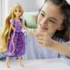 Inspirata de personajul animat din celebrul film Disney Tangled, aceasta papusa Rapunzel, fabricata de Mattel, este o alegere unica pentru copii. Aceasta este ideala pentru a reda scenele preferate si a crea povesti noi, in lumea magica a lui Rapunzel.Apasand pe fundita roz a papusii Rapunzel, aceasta va canta un fragment de 30 de secunde din cunoscuta melodie When Will My Life Begin?, din filmul Disney Tangled.Papusa Rapunzel poarta tinuta ei reprezentativa, din filmul Disney Tangled, si este gata sa fie coafezata de catre copii. Parul lung al papusii adauga un detaliu autentic care surprinde aspectul sau iconic.
