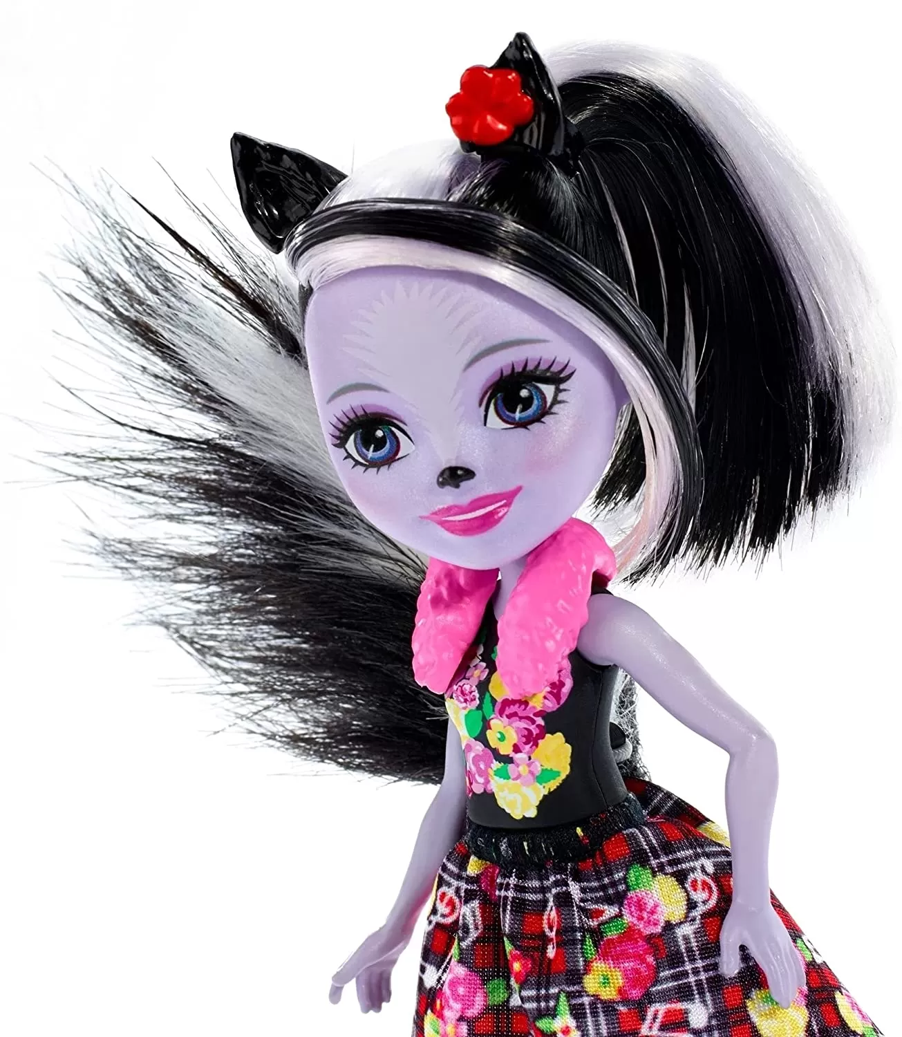Lasati aceste papusi adorabile si prietenii lor animalute sa va incante. Papusile Enchantimals &trade sunt personaje care impartasesc o legatura speciala cu prietenii lor animalute – sunt mereu impreuna si arata la fel! Alegeti dintre papusile Enchantimals &trade si prietenii lor un iepuras, o vulpe, un sconcs, un paun, o oaie si o caprioara. Fiecare papusa poarta o tinua si pantofi in culori stralucitoare, printuri florale. Fiecare se vinde separat, in functie de disponibilitate. Culorile si decoratiunile pot varia. Acest set contine personajul Sage Skunk si figurina Caper.