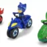 Pachetul de 3 PJ Masks de la Dickie Toys combina cei trei eroi din seria de succes PJ Masks intr-o versiune deosebit de rapida si anume pe motocicletele lor.Cu bicicletele de cross-country reproduse fidel si figurinele de joc atasate, povestile de aventura din binecunoscuta serie de desene animate despre Catboy, Gecko si Eulette pot fi aduse direct in dormitorul copilului tau.Fiecare motocicleta de jucarie cu roata libera este turnata sub presiune, ceea ce o face deosebit de de inalta calitate, durabila si precisa in fiecare detaliu. Gazduit intr-o cutie cadou, acest trio este un must-have absolut pentru fanii serialului si va aduce multe ore de distractie de joc. Aceste motocilete turnate la scara 164 au 7 cm lungime.