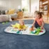 Pe covorasul cu activitati al bebelusului tau, cainii si pisicile sunt jucarii zornaitoare, iar vehiculele stralucitoare zboara pe cer. Un panda si un lenes sunt prieteni de antrenament ai bebelusului, iar un camion de inghetata reda pana la 25 de minute de muzica. Covorul cu activitati Distractie in oras de la Fisher-Price® ofera mai mult de 1,2 metri de spatiu de joaca pentru ca bebelusul dvs. sa exploreze pe masura ce creste! Vine cu 7 jucarii, inclusiv o oglinda de auto-descoperire si jucarii care se ataseaza la bara suspendata deasupra covorasului de joaca, plus un camion de inghetata care reda pana la 25 de minute de muzica. Pe masura ce copilul creste, covorul de joaca devine cadrul perfect pentru aventuri nesfarsite, copiii mici imping piesele de joc prin oras si peste cele mai inalte varfuri inzapezite. Explorarea minunatului oras ajuta la consolidarea abilitatilor motorii brute si fine ale bebelusului, precum si la implicarea simturilor lor vizuale, auditive si tactile!Covorasul de gimnastica pentru copii are o &bdquosala&rdquo de joaca foarte mare, lavabila in masina de spalat, care devine un covor pentru vehicule atunci cand copiii crescSalteaua de joaca are o lungime de peste 1,2 metri si ofera mult spatiu pentru joc si relaxare, dar si pentru timpul petrecut pe burta de catre micutul tau!Camionul de inghetata activat prin miscare, reda pana la 25 de minute de muzica si lumineaza atunci cand bebelusul il impinge de-a lungul covorasului de joaca!Include 7 jucarii, inclusiv 3 vehicule, 2 animale si 2 piese pentru joc de rol