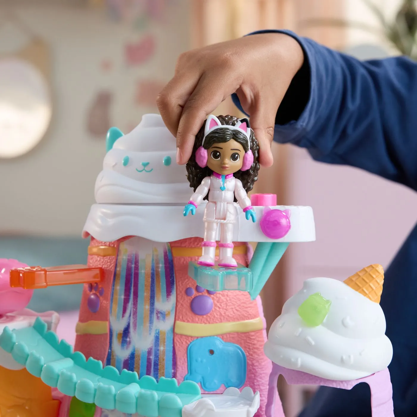 Bucura-te de magia dulciurilor si aventurilor cu setul de joaca Gabby set de joaca muntele de dulciuri, inspirat din indragitul serial Gabby's Dollhouse. Acest set colorat si interactiv aduce in prim-plan o lume plina de surprize dulci, cascade curcubeu si personaje adorabile pregatite pentru distractie fara sfarsit. Setul include 12 piese, printre care figurina Gabby imbracata in costum special, un prieten pisicuta si accesorii tematice care transforma fiecare moment de joaca intr-o poveste delicioasa. Muntele in forma de desert cu inghetata si frisca ascunde trasee si detalii jucause, iar culorile vibrante stimuleaza imaginatia si creativitatea copiilor. Micii exploratori pot descoperi magia interactiva prin functia Try Me, care adauga un plus de entuziasm experientei. Joaca devine astfel mai captivanta si plina de moment surprinzatoare. Recomandat copiilor de peste 3 ani, acest set este perfect pentru o colectie completa Gabby's Dollhouse sau pentru a oferi un cadou care imbina joaca, fantezia si bucuria. Setul promite ore intregi de joaca distractiva si povesti fermecatoare in lumea colorata a lui Gabby.