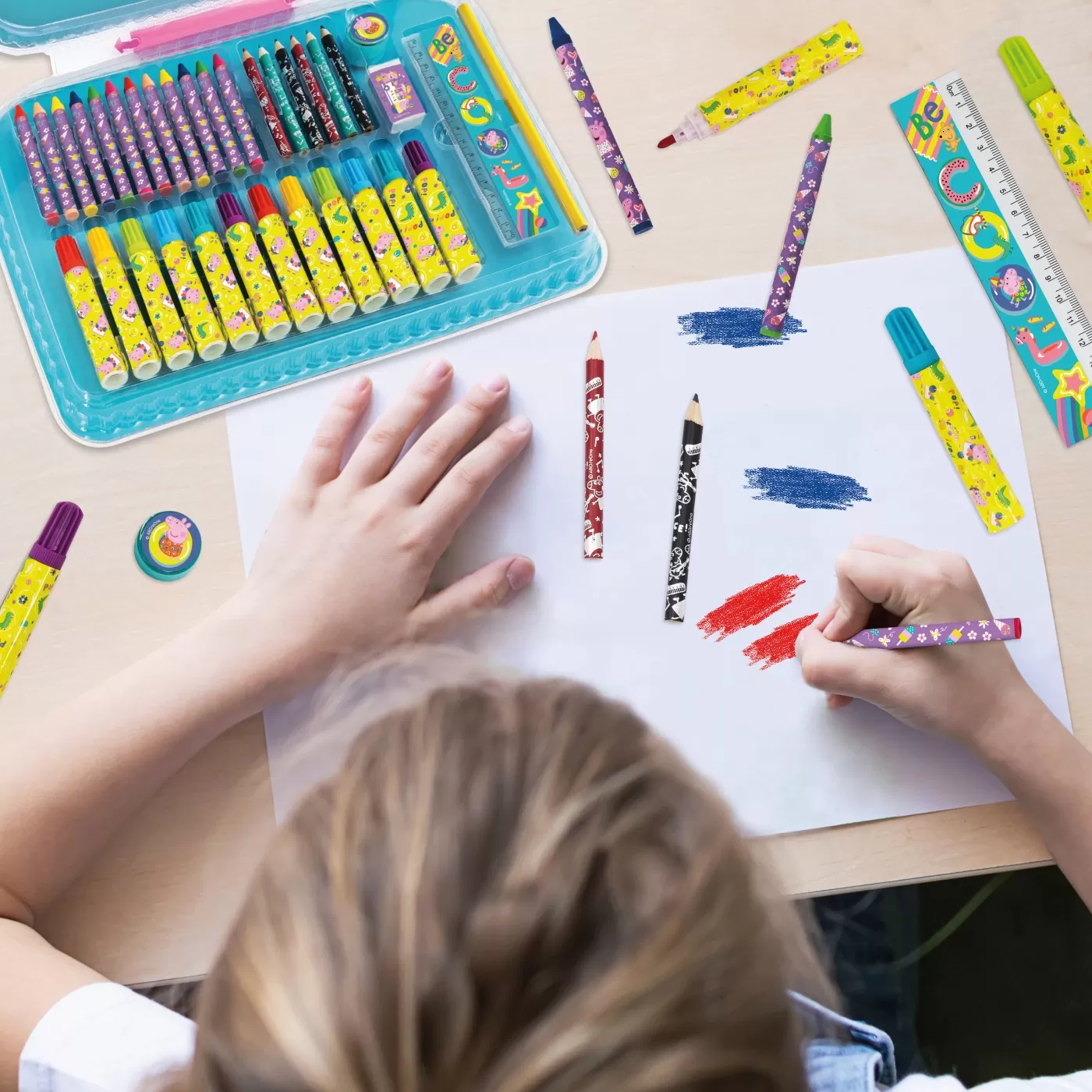 Art Case insoteste copiii pretutindeni, oferindu-le posibilitatea de a desena, picta si crea. Prin acest proces copilul va putea invata culorile si nuantele, formele si notiunea de marimi. Setul este o idee de cadou perfecta pentru fiecare copil care iubeste distractia creativa si care si-ar dori un set mobil de desen, pentru a-si imbunatati abilitatile creative. Valori dezvoltate creativitate, coordonare mana-ochi, capacitate de concentrare si rabdare.​Contine12 creioane colorate, 12 markere,6 creioane de culoare,1 creion,1 rigla,1 radiera, o ascutitoare. Potrivit pentru copiii de la 3 ani.