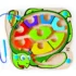 O bagheta magnetica (care trebuie manevrata cu mana) strecoara perle prin labirintul in forma de carapace colorata de testoasa. Acesta este acoperit cu geam de plastic, copilul trebuind sa-si foloseasca dexteritatea pentru a plimba perlele. Scopul jocului este ca bilele sa fie plimbate prin labirint pana cand ajung la sfarsit. Jucaria are un maner special, pentru a putea fi transportata usor, iar bagheta magnetica este prinsa cu un snur, pentru a nu se pierde. Jucariile sunt realizate din lemn, folosind materiale ecologice, vopsite in culori atragatoare cu vopsele nontoxice, care depasesc cele mai inalte si stricte standarde internationale de siguranta si calitate, precum EN71, ISO9001, ASTM F963 si altele. De multi ani, Hape a creat jucarii fantastice, de inalta calitate, folosind materiale ecologice si durabile, fiecare produs fiind atent proiectat pentru a stimula abilitatile senzoriale, fizice si emotionale.