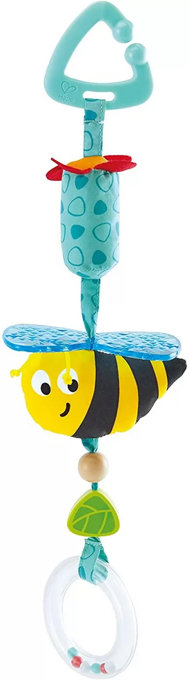Stimulati simturile bebelusului si dezvoltarea creierului lor cu acest lantisor zornaitor colorat potrivit pentru agatarea de patuturi, carucioare si cosuri. Bebelusul se va bucura de compania albinutei vesele si de zgomotele placute ale florii si ale inelului. Folositi cuierul de plastic pentru a atasa zornaitoarea la caruciorul bebelusului dvs. sau peste patutul sau cosul lor. Agitati zornaitoarea pentru a stimula auzul bebelusului si mentineti-l angajat. tine copilul ocupat si angajat in timp ce va deplasati sau acasa. Include articole de joaca colorate, moi, margele din lemn, grafica draguta si clopote incorporate. Permite bebelusului sa aiba o experienta senzoriala complete. Ajuta bebelusii sa invete despre bug-uri, natura, culori si forme. Zgomotul de flori ofera stimulare tactila si auditiva, iar inelul transparent ajuta la dezvoltarea abilitatilor motorii. Usor de indepartat si curatat Jucariile sunt realizate din lemn, folosind materiale ecologice, vopsite in culori atragatoare cu vopsele nontoxice, care depasesc cele mai inalte si stricte standarde internationale de siguranta si calitate, precum EN71, ISO9001, ASTM F963 si altele. De multi ani, Hape a creat jucarii fantastice, de inalta calitate, folosind materiale ecologice si durabile, fiecare produs fiind atent proiectat pentru a stimula abilitatile senzoriale, fizice si emotionale.