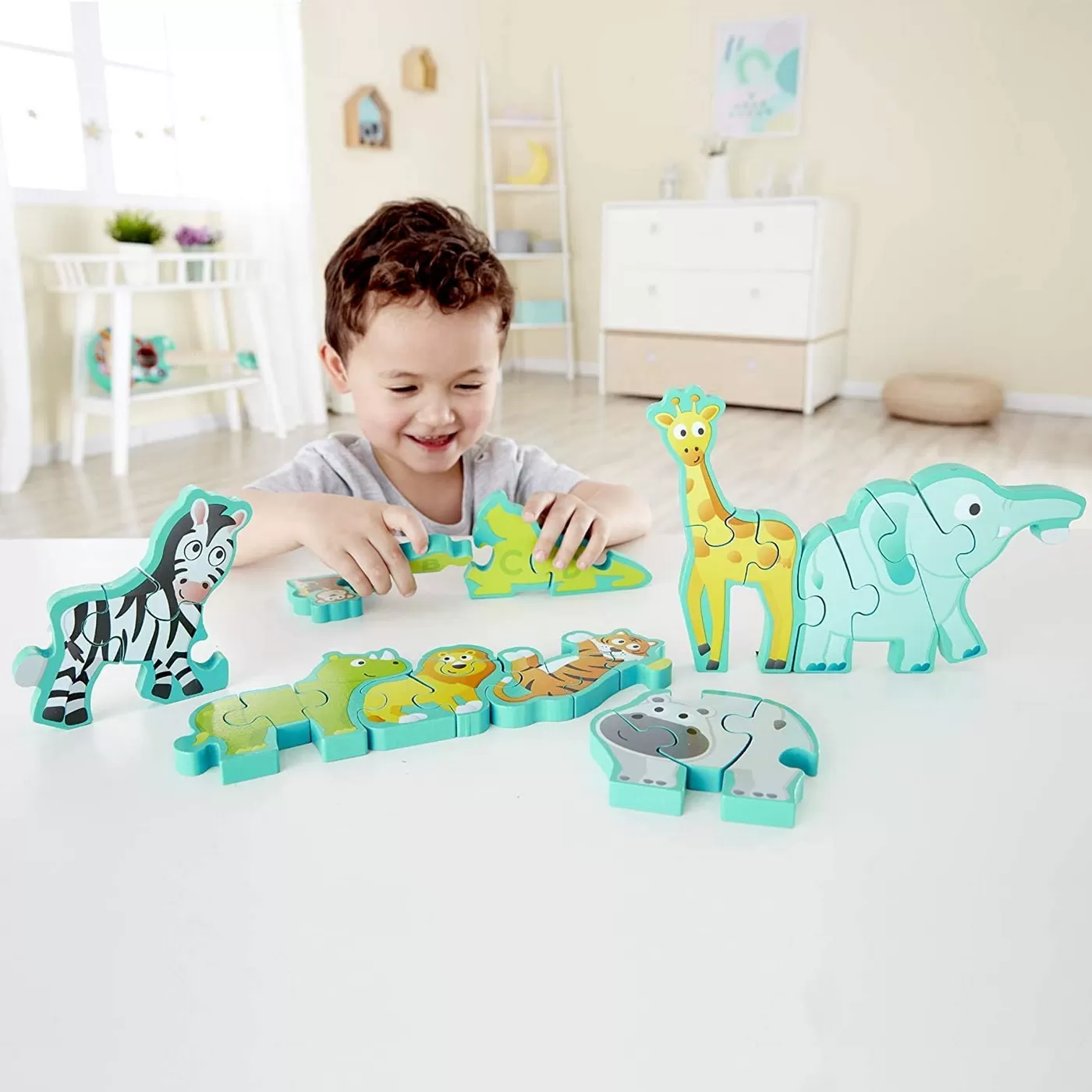 Puzzle din lemn frumos realizat din 26 de piese, cu animale salbatice pe o parte si alfabetul pe cealalta. Puzzle-ul sta vertical pe masa. Montati animalele impreuna, apoi intoarceti-va pentru a vedea daca literele sunt in ordine sau invers. Baza larga va permite sa asezati puzzle-ul in pozitie verticala pe masa sau pervazul ferestrei. Prezinta atat animale salbatice, cat si litere – excelent pentru dezvoltarea recunoasterii, vocabularului si concentrarii Piesele groase sunt perfecte pentru mainile mici. Jucariile sunt realizate din lemn, folosind materiale ecologice, vopsite in culori atragatoare cu vopsele nontoxice, care depasesc cele mai inalte si stricte standarde internationale de siguranta si calitate, precum EN71, ISO9001, ASTM F963 si altele. De multi ani, Hape a creat jucarii fantastice, de inalta calitate, folosind materiale ecologice si durabile, fiecare produs fiind atent proiectat pentru a stimula abilitatile senzoriale, fizice si emotionale.