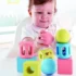 Zornaitoarele in forme geometrice, sunt proiectate in mod special pentru a se potrivi perfect in mainile celor mici si ii va ajuta sa-si abilitatile de coordonare mainii-ochi atunci cand sunt agitate. Realizate din materiale pe baza de orez. Agitati-le pentru a va distra bebelusul cu sunetele pe care le emit .Pe masura ce copiii cresc, incurajeaza-i sa incerce cateva activitati de stivuire si sortare ,uitandu-va prin lentilele colorate ale blocului. Pachetul contine un clopot si o jucarie patrata care contine margele de plastic. Pacehtul contine o zornaitoare roz, una galbena si un albastra. Dimensiuni si forme proiectate de experti, care se potrivesc perfect mainilor mici. Jucariile sunt realizate din lemn, folosind materiale ecologice, vopsite in culori atragatoare cu vopsele nontoxice, care depasesc cele mai inalte si stricte standarde internationale de siguranta si calitate, precum EN71, ISO9001, ASTM F963 si altele. De multi ani, Hape a creat jucarii fantastice, de inalta calitate, folosind materiale ecologice si durabile, fiecare produs fiind atent proiectat pentru a stimula abilitatile senzoriale, fizice si emotionale.