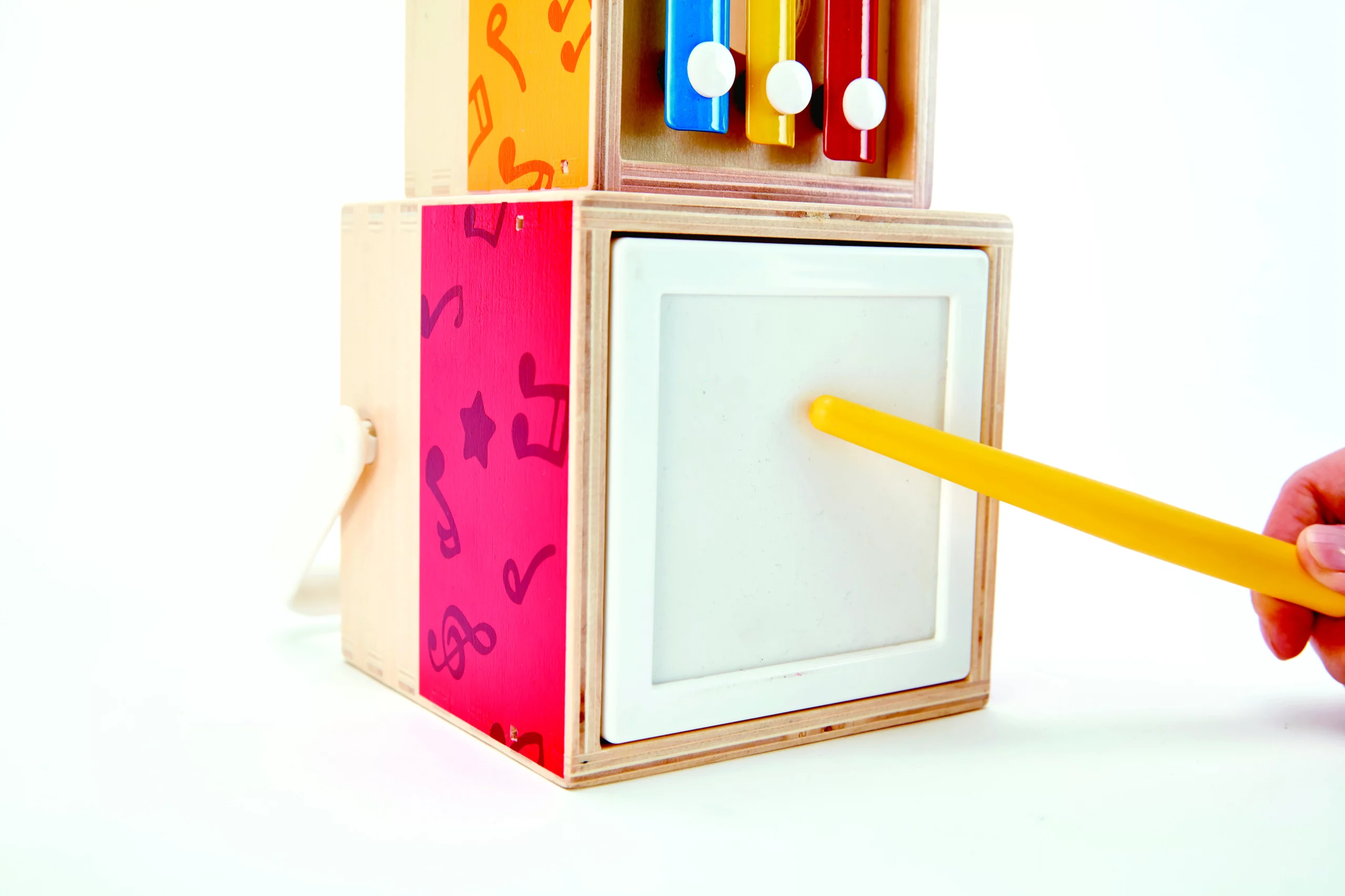Cu acest set muzical inovator si variabil, chiar si copiii mici pot crea muzica si explora melodiile. Blocurile individuale pot fi asamblate cu usurinta in orice mod si exerseaza culoarea si formele. Setul din lemn include blocuri de muzica individuale cu diferite optiuni de joc, cum ar fi un clopot sau mini xilofon. Setul contine un total de 6 parti. Copiii pot asambla blocurile in functie de nevoile lor. De asemenea, ei practica cunostinte despre culori si forme. Stimuleaza simturile copiilor si se distreaza in mod fiabil. Potrivit pentru dezvoltarea abilitatilor motorii fine si mecanice. Jucariile sunt realizate din lemn, folosind materiale ecologice, vopsite in culori atragatoare cu vopsele nontoxice, care depasesc cele mai inalte si stricte standarde internationale de siguranta si calitate, precum EN71, ISO9001, ASTM F963 si altele. De multi ani, Hape a creat jucarii fantastice, de inalta calitate, folosind materiale ecologice si durabile, fiecare produs fiind atent proiectat pentru a stimula abilitatile senzoriale, fizice si emotionale.