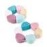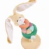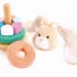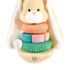 Jucarie de stivuire cu baza robusta din lemn de fag, trei inele de stivuire colorate din materiale diferite si un blat cu un cap de iepuras pufos. Toate cele trei inele pot fi folosite si ca jucarii separate. Cele trei inele de stivuire constau in – un inel albastru deschis cu catifea super moale si coada pufoasa de pompon, care serveste si ca o banda de tragere, – sunete de clicuri in timp ce faceti acest lucru. – un inel de flori cu sase petale de culori diferite din lemn de fag durabil, care sunt conectate printr-o banda elastica rezistenta si pot fi mutate, – un inel de tesatura roz care poate fi folosit si ca zdranitoare. Cand iepurele cu urechi lungi stivuit este inghiontit, face miscari amuzante. Inelele sunt realizate din materiale diferit structurate si colorate. Aceste jucarii promoveaza abilitatile motorii fine si grosiere, simtul tactil si recunoasterea culorilor.