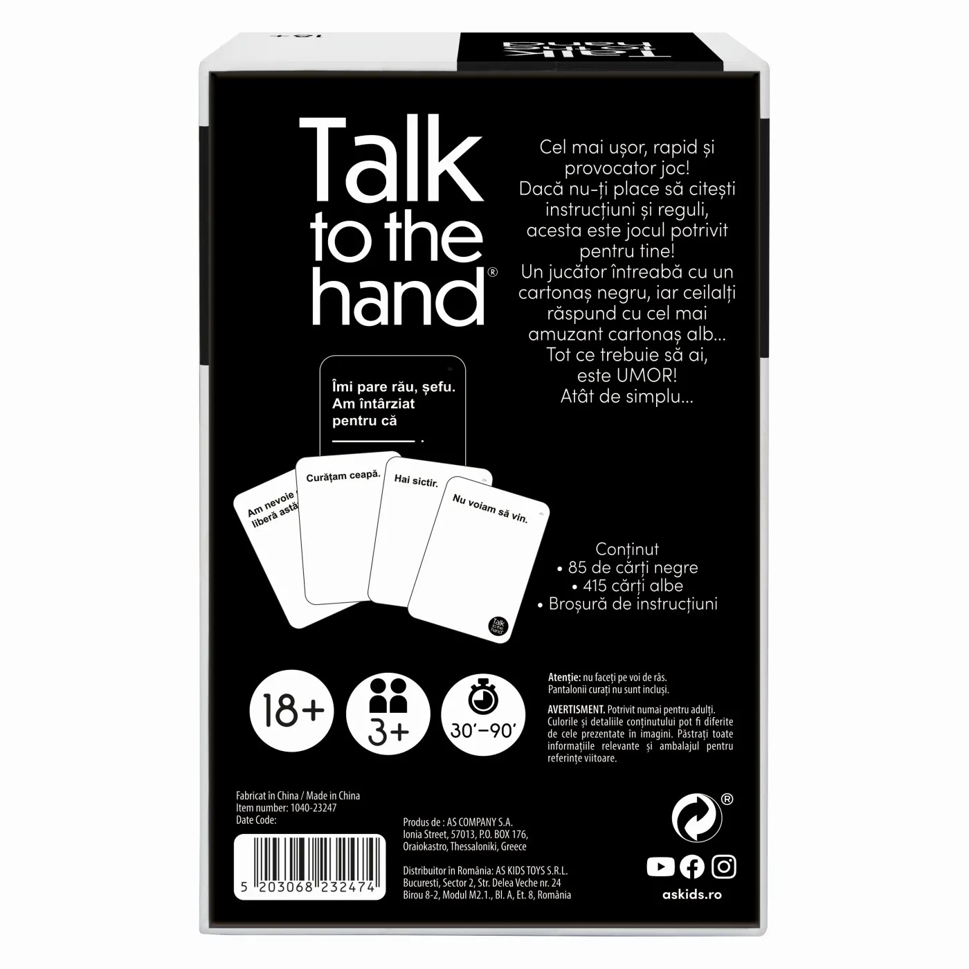 JOC DE SOCIETATE TALK TO THE HAND IN LIMBA ROMANA