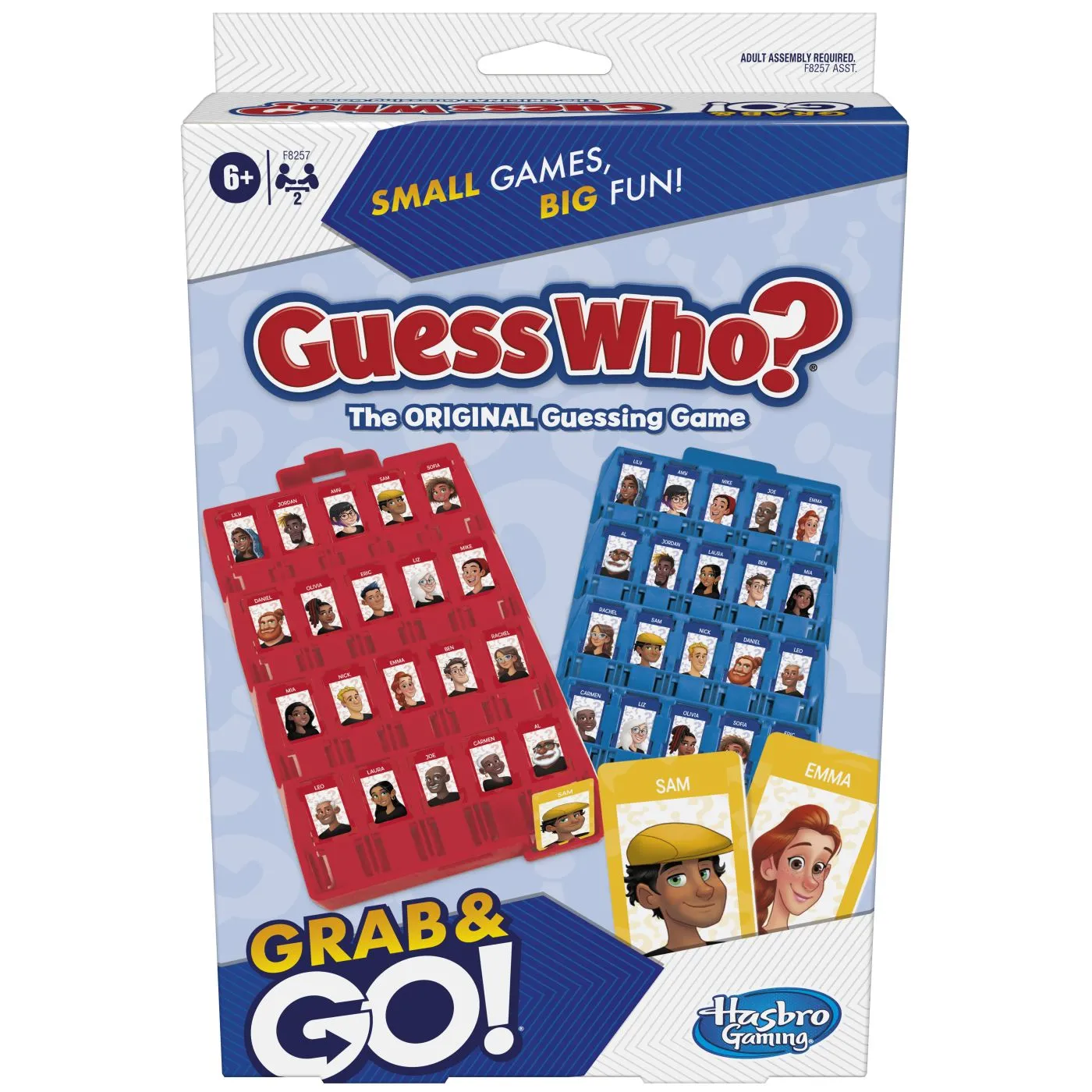 Cine este campionul la ghicit? Acest joc compact Guess Who? Grab and Go prezinta acelasi gameplay clasic Guess Who? intr-un format de calatorie! La fel ca in jocul de dimensiuni normale, jucatorii isi pun adversarul sau intrebare cu da sau nu, iar raspunsul ii apropie de cine se afla pe cartea misterioasa a adversarului. Cand cred ca stiu cine este personajul misterios al adversarului, jucatorii ghicesc. Ghiceste corect pentru a castiga! Formatul mini, de calatorie, le permite copiilor cu varsta de 6 ani si peste sa joace jocul Guess Who? Grab and Go aproape oriunde, in miscare! In plus, este usor de configurat si vine cu spatiu de stocare incorporat. Jocul este in limba engleza.