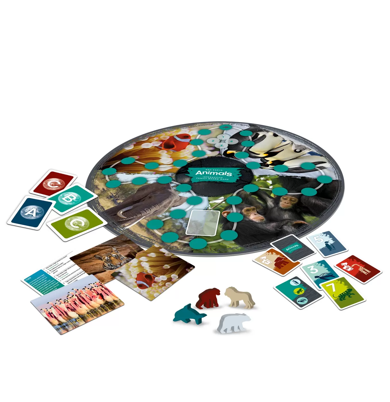 BBC Earth Animals este un joc interactiv, care te invata lucruri distractive si interesante despre planeta, despre animalele care traiesc aici si despre fauna. Puteti gasi videoclipuri frumoase si intrebari interesante pe site-ul web al jocului. Scopul jocului este de a strange carti cu animale cu raspunsuri corecte si apoi de a le trece pe trepte, pentru ca oricine este in frunte dupa ultima runda castiga jocul. Daca nu aveti o conexiune la internet, pur si simplu ridicati si jucati cartile ilustrate pentru joc. Toate videoclipurile pentru joc au fost puse la dispozitie de BBC, inclusiv momente speciale din seria premiata BBC Earth. BBC Earth Animals este un joc de societate interactiv realizat din materiale durabile, certificate FSC. Bucurati-va de joc si cunoasteti frumoasa noastra planeta. Continutul jocului tabla de joc, 4 piese, 32 de carti cu imagini, 55 de carti cu animale, 12 discuri de raspuns ABC, videoclipuri si intrebari online www.bbcearthboardgame.com. BBC Earth Animals este un joc de societate interactiv care poate fi jucat pe un laptop, tableta, smartphone sau smart TV. Recomandat pentru 2-4 jucatori incepand cu varsta de 8 ani, timp de joc aprox. 45 min.
