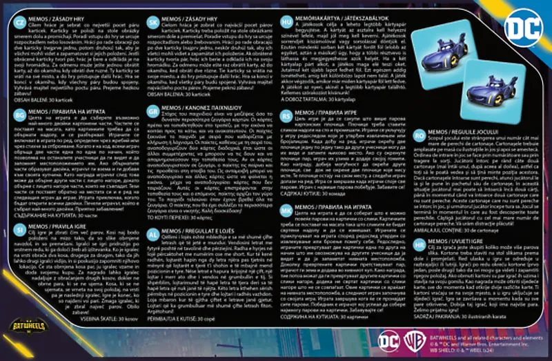 Jocul de memorie DC Batwheels este alegerea perfecta pentru micii fani ai supereroilor care adora lumea lui Batman si vehiculele cool. Jocul dezvolta intr-un mod captivant si distractiv memoria, atentia si concentrarea copiilor, in timp ce se joaca cu personajele lor preferate din Batwheels. În joc, copiii trebuie sa gaseasca perechile de carti care contin imagini identice. Vehiculele iconice din seria Batwheels, cum ar fi Batmobile, Redbird si Buff, apar pe carti cu grafica colorata si spectaculoasa, permitandu-le celor mici sa se cufunde cu usurinta in lumea palpitanta a orasului Gotham. Datorita regulilor simple ale jocului de memorie, acesta poate fi savurat de la varsta de 3 ani, astfel incat chiar si cei mai mici se pot alatura jocului comun. Ajuta la dezvoltarea memoriei vizuale si a capacitatii de observare, in timp ce copiii se bucura sa caute perechile potrivite. Cartile sunt realizate din carton rezistent, astfel incat sunt durabile si isi pastreaza calitatea pe termen lung. Acest joc de memorie Batwheels este o alegere ideala pentru serile de jocuri in familie, deoarece parintii si fratii se pot alatura cu usurinta, garantand distractia comuna. Este un cadou excelent pentru orice mic fan al lui Batman care iubeste sa invete si sa-si dezvolte abilitatile prin joc. Caracteristici Design original DC Batwheels Dezvolta memoria si concentrarea Reguli simple, jucabil de la 3 ani Carton gros si durabil Joc distractiv si educativ.