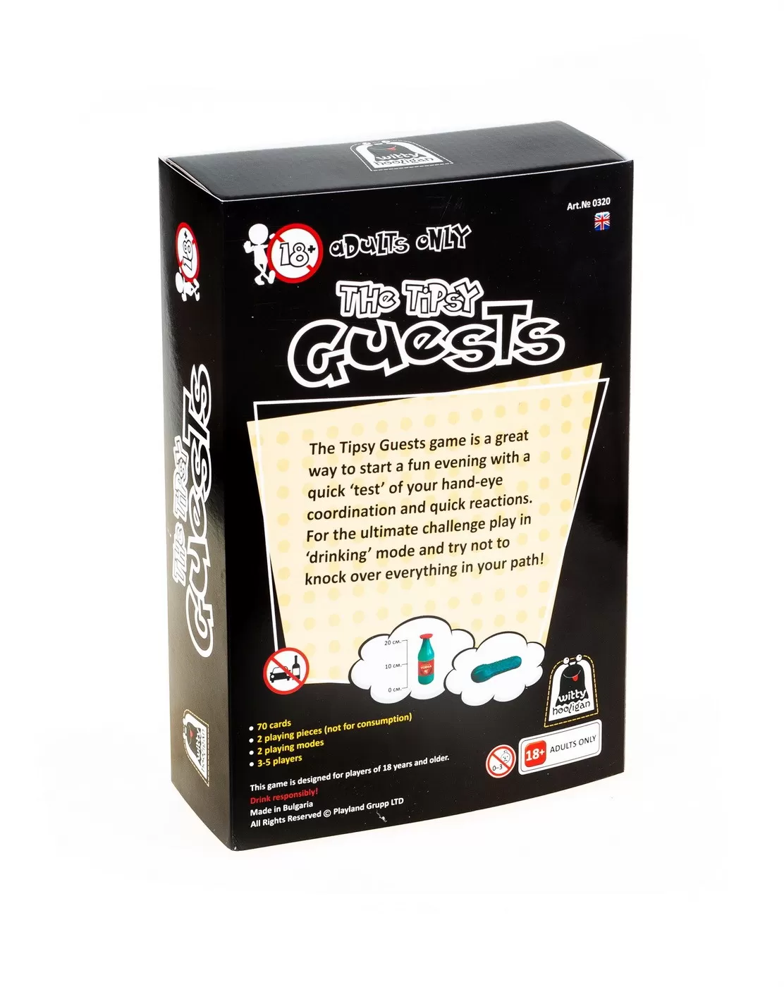 The Tipsy Guests este un joc pentru adultii peste 18 ani din seria Witty Hooligan. În ea, jucatorii trebuie sa plaseze comenzi de mancare si bautura, dar pentru a le primi, trebuie sa fie deosebit de rapizi – doar cel care prinde primul castravetele sau sticla va primi ceea ce a comandat! Pachetul contine 70 de carti,1 sticla,1 castravete. Jocul se poate juca in 3-5 jucatori.