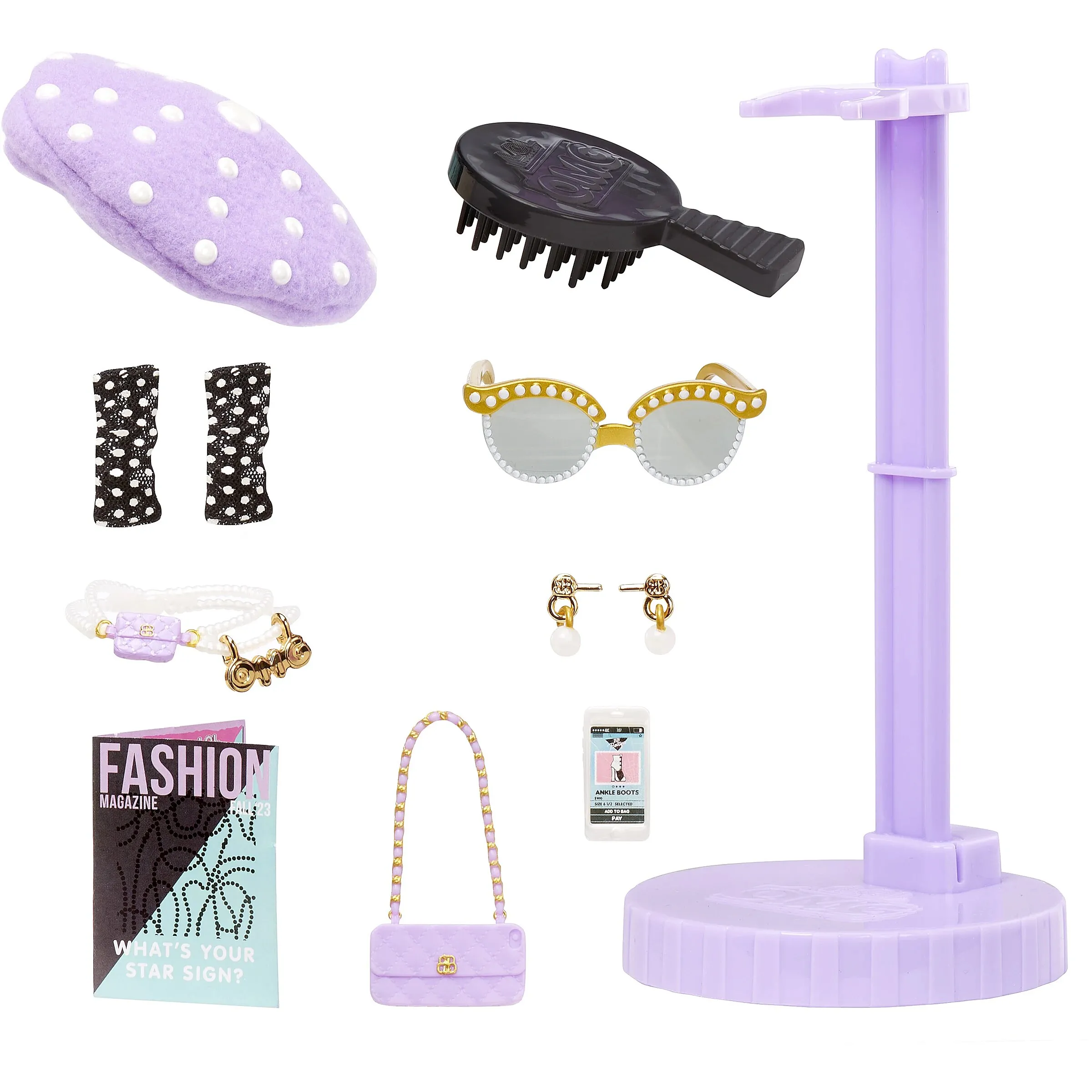 Descopera papusa L.O.L. Surprise! OMG – Pose! Pose este mereu gata de o sesiune de shopping, fiind experta in descoperirea celor mai noi tendinte! Cand prietenele ei se simt pierdute printre rafturi, Pose este cea pe care o suna, deoarece adora sa impartaseasca cele mai recente stiluri cu BFF-urile ei. Papusa Pose are trasaturi uimitoare, par superb, o tinuta glamour si este articulata pentru a-ti permite sa creezi nenumarate scenarii de joaca.Setul includeTinuta fabuloasa si accesorii care reflecta stilul rafinat al lui Pose.Bluza chic cu funda, poseta in forma de carcasa de telefon, bereta mov si multe altele.Pantofi, ochelari, perie de par si un stand pentru papusa.Colectioneaza-le pe toate si exploreaza o lume a modei, surprizelor si prieteniei!