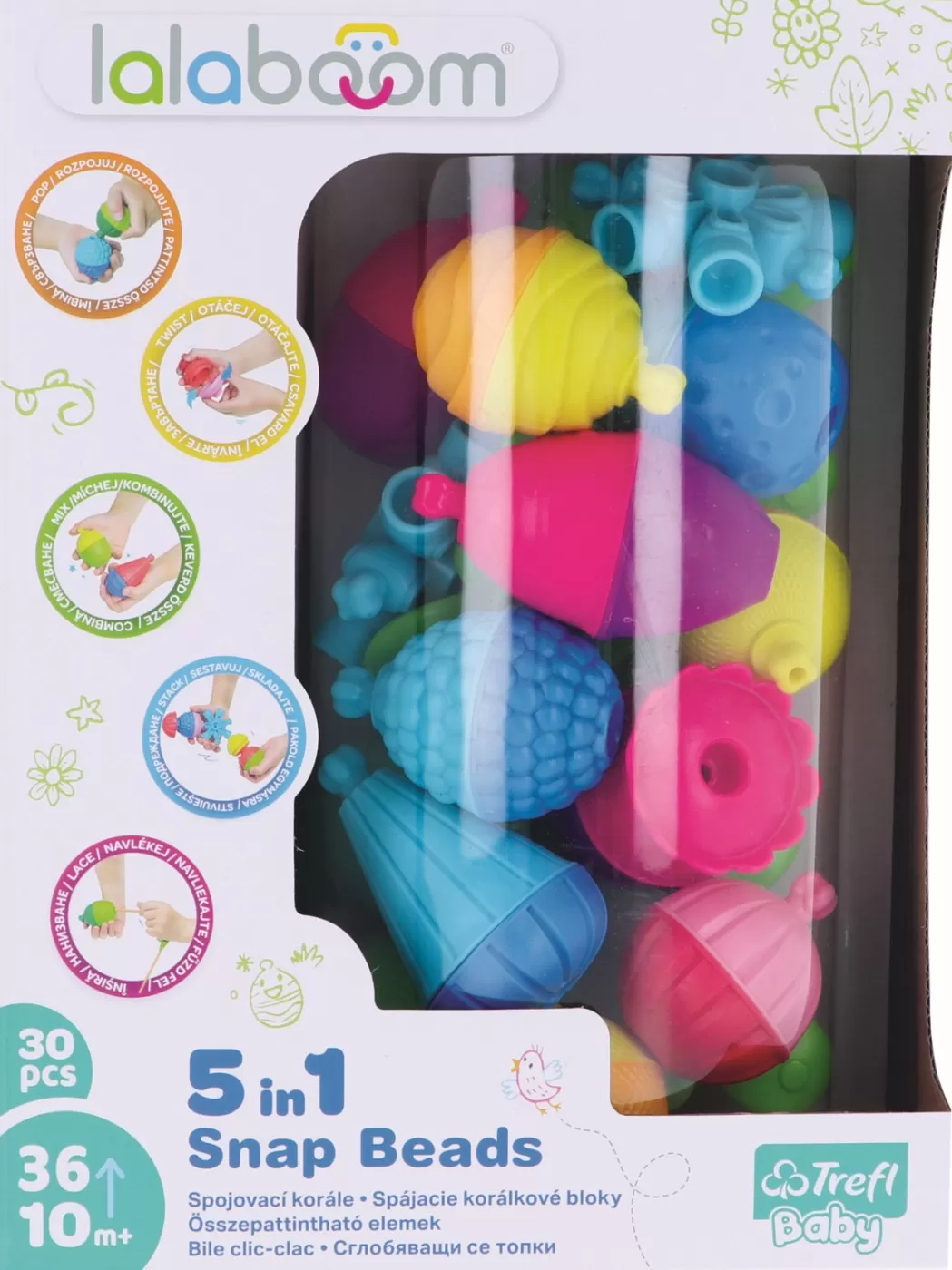 Setul de blocuri de margele de conectare Lalaboom este o jucarie senzoriala exceptionala. Blocurile de margele conectate stimuleaza dezvoltarea copilului, care invata sa perceapa si sa interpreteze senzatiile provenite din mediul inconjurator. Ajuta la dezvoltarea tuturor simturilor, in special a vazului, a auzului si a atingerii. Blocurile Lalaboom stimuleaza dezvoltarea corecta a copilului si permit utilizarea diferitelor variante ale jocului de dezvoltare. Exploreaza lumea cu Lalaboo! Blocurile pot fi conectate intre ele prin conectarea unui bloc la altul. Blocurile de margele de legatura pot fi desfacute si pliate. Ele pot fi combinate dupa bunul plac, creand astfel diverse constructii colorate. Singura limita este propria ta imaginatie! Datorita jocului cu blocuri de margele de legatura, copilul invata in propriul ritm. Conectarea blocurilor de margele cu diferite culori, forme si structuri ofera diverse senzatii tactile. Un produs extraordinar care creste odata cu copilul si ii sustine dezvoltarea pe mai multe niveluri. Ajuta la imbunatatirea acuratetei miscarilor mainii, a minutiozitatii prinderii cu degetele si, de asemenea, a miscarilor de rotatie ale incheieturilor. De asemenea, permite exersarea coordonarii vizual-motorii, dezvolta creativitatea si imaginatia spatiala. Jucarii care sustin dezvoltarea senzoriala a copilului! Blocurile de margele de conectare stimuleaza dezvoltarea integrarii senzoriale, care este legata de procesul de organizare a perceptiilor senzoriale. Creierul nostru lucreaza pentru a percepe cat mai multe senzatii si este modelat de aceste experiente. De aceea este important ca jucariile sa ofere o varietate de experiente tactile, vizuale si auditive. De asemenea, trebuie sa permita diverse manipulari cu obiecte. Seria Lalaboom satisface aceste nevoi. Acesta garanteaza copilului contactul cu obiecte cu forme si structuri diferite. Un copil mic isi dezvolta abilitatile de a percepe senzatiile din palme in timp ce se joaca cu blocuri de margele de legatura. Inspirat de Montessori Seturile Lalaboom sunt inspirate de metoda Montessori, care proclama ca copiii invata in primul rand prin actiune, experienta. Se pune mare accent pe acuratete, sistematicitate si independenta. Blocurile de margele de legatura Lalaboom au fost create pentru a sprijini dezvoltarea completa a copiilor, in functie de posibilitatile si abilitatile individuale ale fiecarui copil. Siguranta este cea mai importanta! Blocurile de margele de conectare sunt fabricate din plastic sigur. Sunt destinate copiilor cu varsta de la 10 luni.