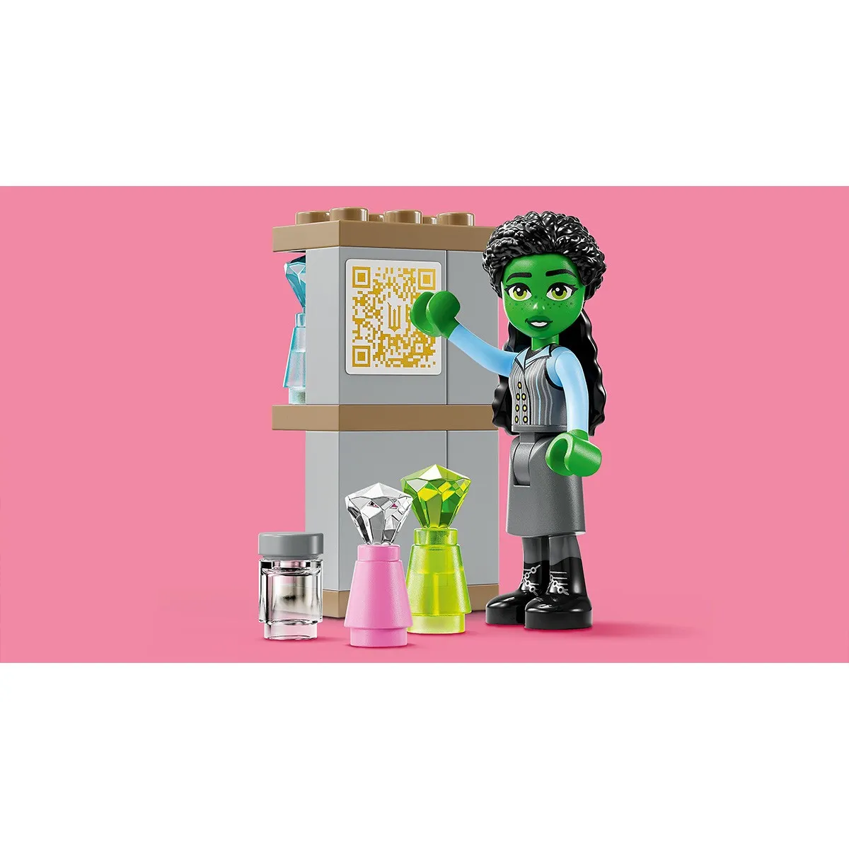 Transporta fetele si baietii de peste 7 ani in tinutul Oz cu jucaria fantasy Glinda, Elphaba si Nessarose la Universitatea Shiz (75681). Este cadoul ideal pentru copiii care indragesc seturile cu casute pentru papusi si pentru fanii filmului Wicked. Fanii pornesc in propria aventura LEGO® Wicked atunci cand Glinda soseste la Universitatea Shiz cu o barca cu panze de jucarie pentru copii. Barca are o vela articulata si este colorata intr-o nuanta de roz, la fel ca cea din film. Inspirat de filmul Wicked, acest cadou pentru cel mai bun prieten sau cea mai buna prietena ofera copiilor ocazia sa interpreteze povesti despre prietenie intre figurinele minipapusi Glinda, Elphaba si Nessarose. Cladirea detaliata cu 2 etaje are 2 balcoane si o camera cu un raft pentru carti. Copiii pot descoperi codul QR si il pot scana cu dispozitivul lor pentru a debloca continut online LEGO Wicked unic. Setul cu casuta pentru papusi este plin cu accesorii creative, precum flori, potiuni si un sticker pentru scaunul cu rotile al lui Nessarose, astfel incat copiii care adora casutele pentru papusi sa-si personalizeze setul exact asa cum doresc.