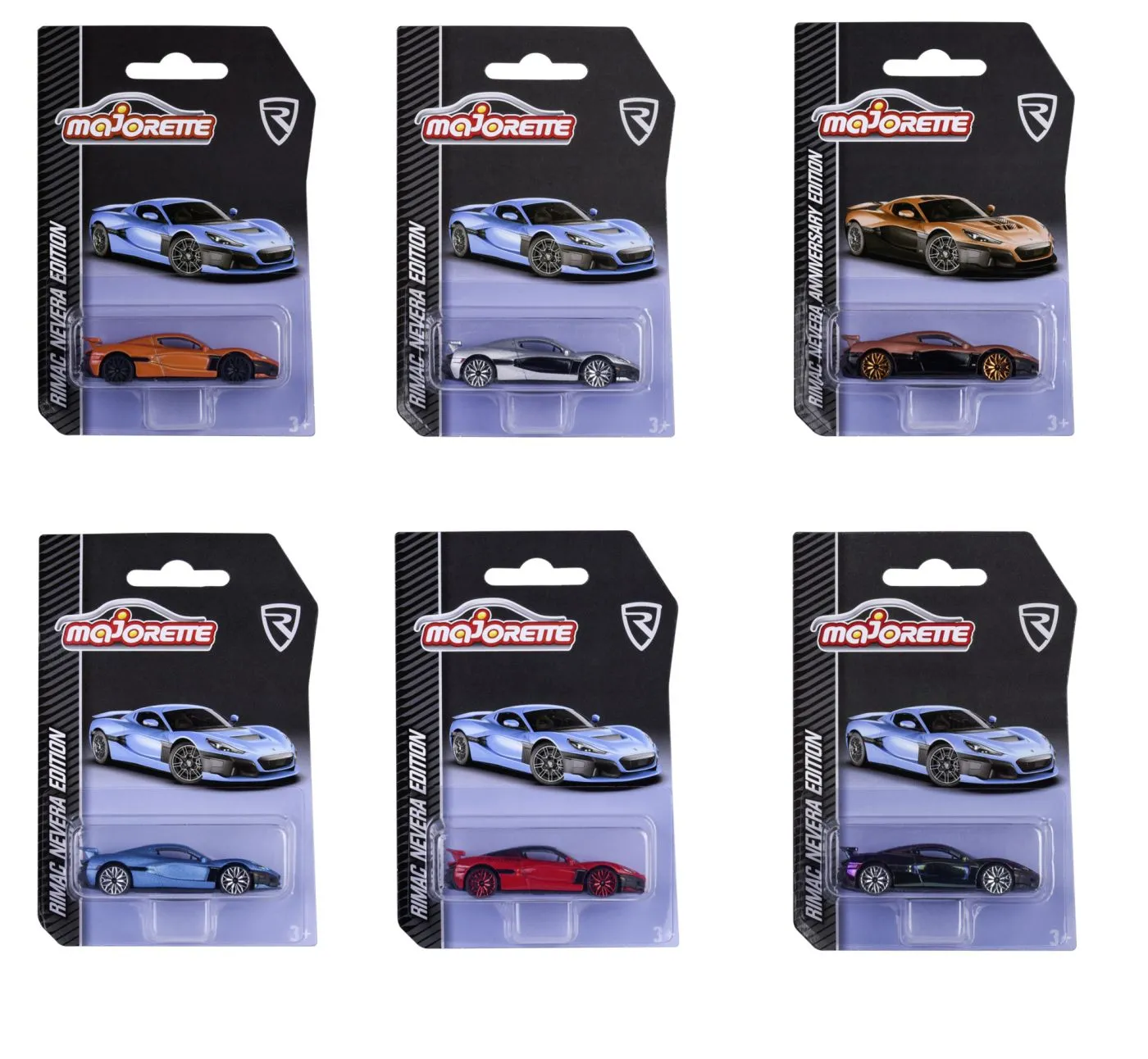 Masina Majorette Rimac Nevera Edition – selectie aleatorie a 6 masini de jucarie cu roata libera si suspensie, de la 3 ani, 7,5 cm.