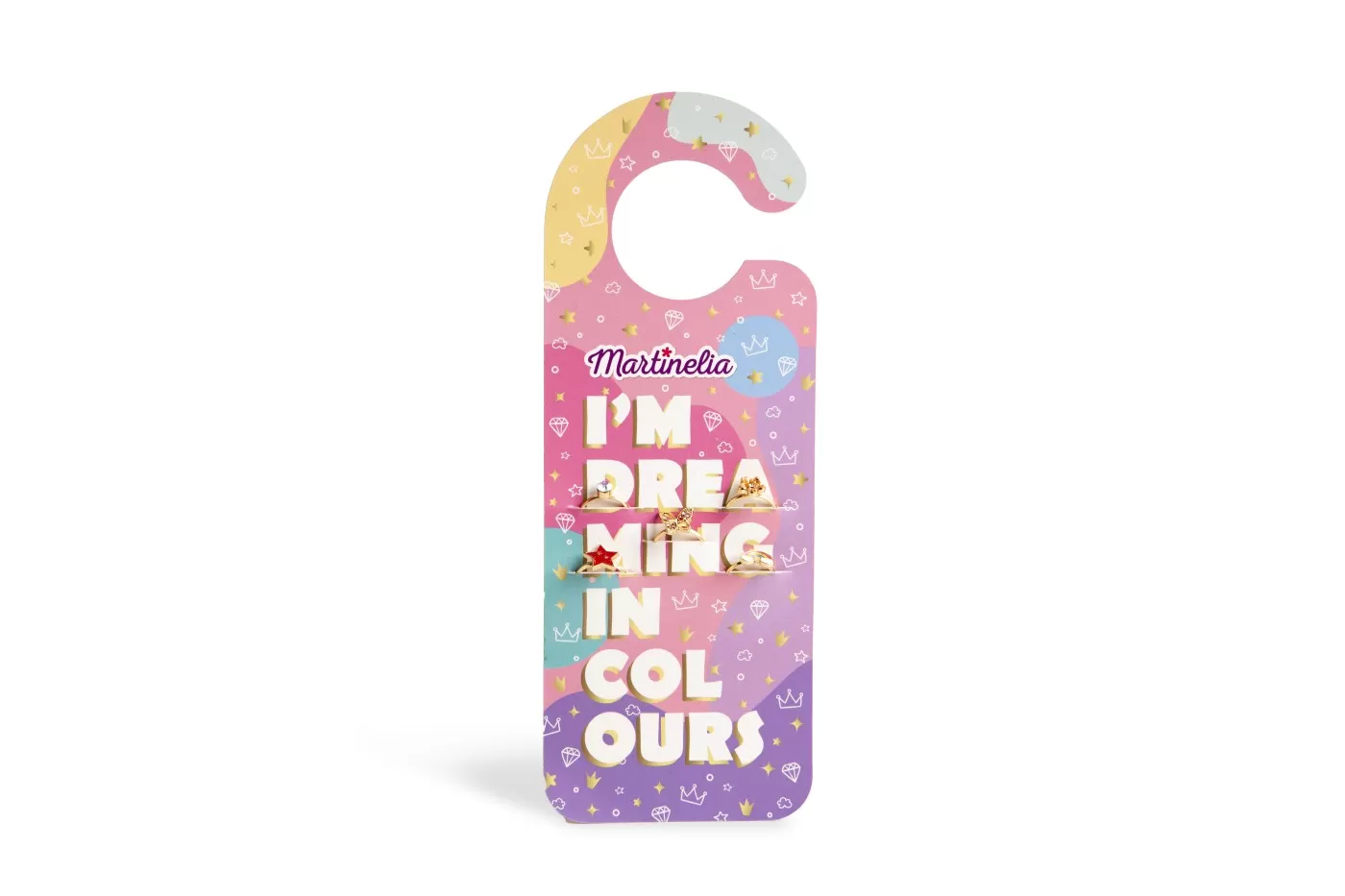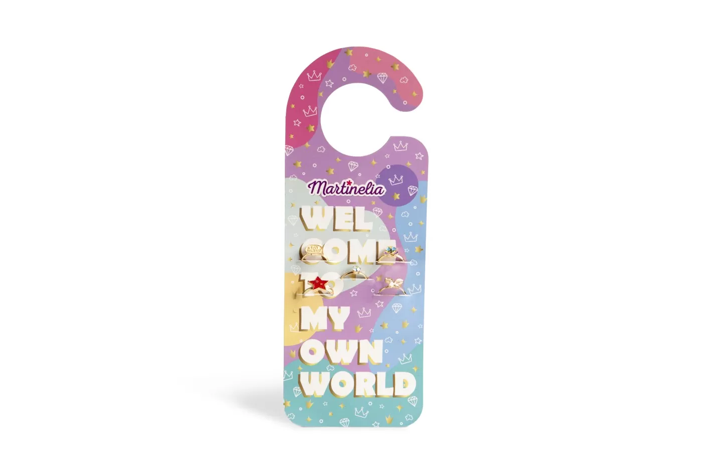 Welcome to my World de la Martinelia – un set uimitor cu 5 inele pentru fetite viu colorate si cu modele deosebite. Include suport de agatare si depozitare. Martinelia este un brand care face parte din grupul Aquarius Cosmetic SL , principalul distribuitor de parfumuri si cosmetice in Spania inca din anul 1995. in ziua de astazi, brandul se gaseste in toata lumea, nu doar in Spania. Produsele brandului la Martinelia pot fi recunoscute cu usurinta datorita ambalajului unic si jucaus. in oferta brandului Martinelia veti gasi seturi de cadouri, accesorii pentru par, popularele balsamuri de buze aromate si alte accesorii care vin in ambalaje haioase. Copiii vor fi incantati de produse precum setul decorativ in forma de ursulet, peria de par unicorn sau periuta de dinti cu sirene. Martinelia ofera pentru cei mici o gama larga de produse distractive si inovatoare in toate culorile curcubeului. Seturi de machiaj, rujuri si tot felul de produse si accesorii concepute pentru a tine pasul cu ultimele tendinte. Produsele sunt sigure si prietenoase cu mediul fiind special proiectate pentru a putea fi folosite de copii.
