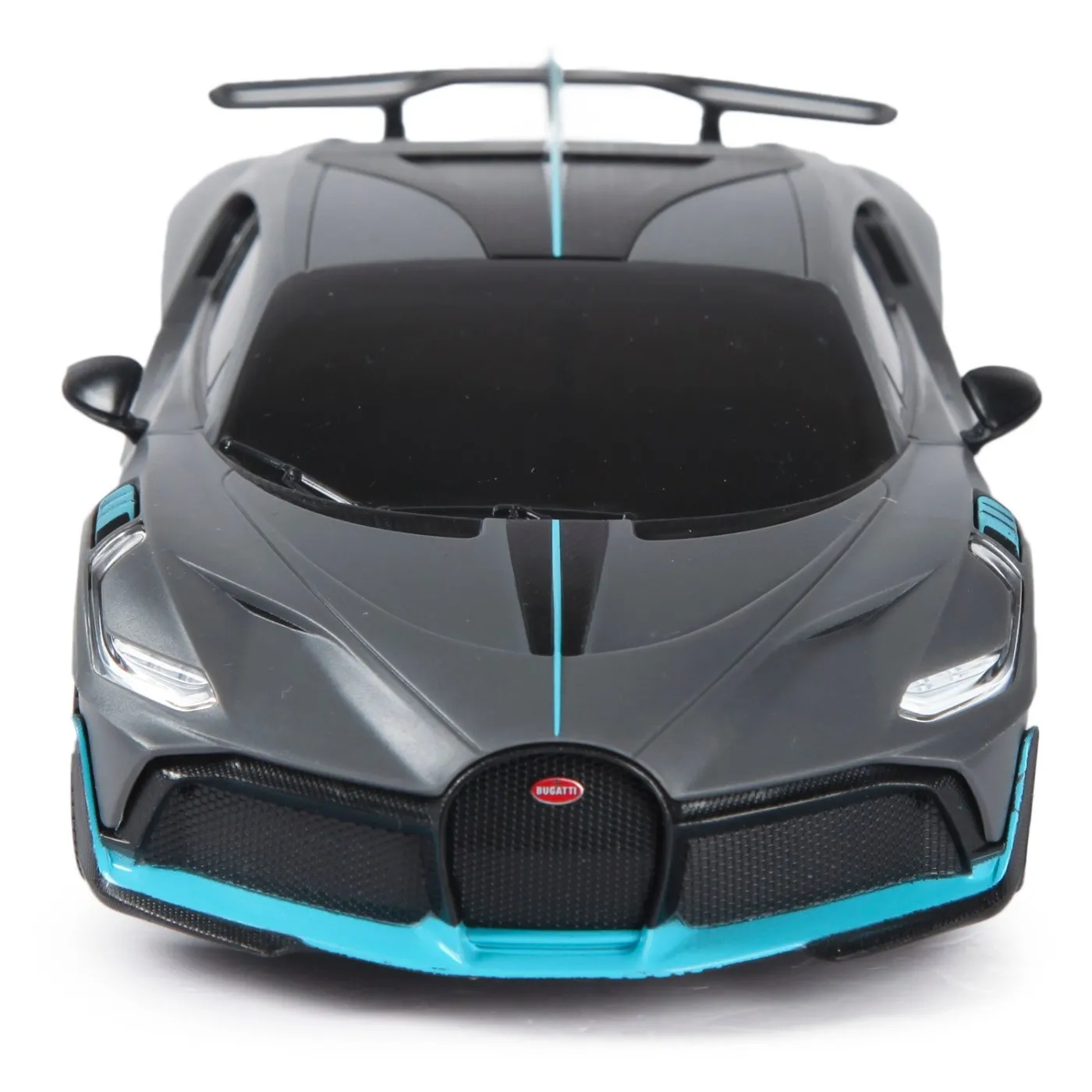 Copilul dumneavoastra se poate juca in voie cu masina cu telecomanda Bugatti Divo, scara 1 la 24, oferita de brandul international Rastar. Nicio cursa nu este imposibil de castigat cu acesta masinuta, replica oficiala cu licenta a modelului original, construita cu mare atentie la detalii. Masinuta are proportiile ideale pentru momente pline de distractie si amuzament, avand dimensiunile in centimetri dupa cum urmeaza 17*8.6*8.3.Masinuta functioneaza pe frecventa de 2.4G.Alimentarea se face astfel pentru masinuta sunt necesare 3 baterii tip AA , iar pentru telecomanda 2 tip AA.Masinuta se poate deplasa in toate directiile inainte, inapoi, stanga sau dreapta. Masina cu telecomanda Bugatti Divo, scara 1 la 24, poate rula cu o viteza aproximativa de 10km/h, are tractiune 2WD, anvelope de cauciuc, posibilitate de reglaj a directiei direct pe sasiu si o raza de actiune a telecomenzii de circa 20 de metri.