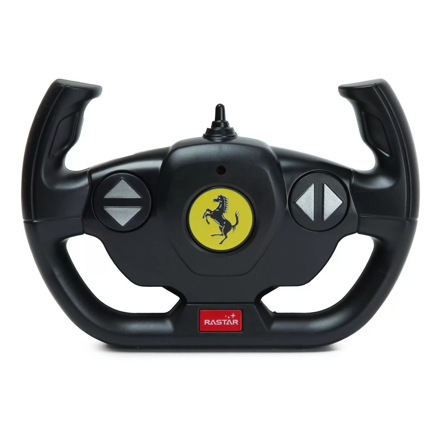 Copilul dumneavoastra se poate juca in voie cu masina cu telecomanda Ferrari SF90 Stradale scara 1 la 14, oferita de brandul international Rastar. Nicio cursa nu este imposibil de castigat cu acesta masinuta, replica oficiala cu licenta a modelului original, construita cu mare atentie la detalii. Masinuta are proportiile ideale pentru momente pline de distractie si amuzament, avand dimensiunile in centimetri dupa cum urmeaza 33.5*14.7*10.8.Masinuta functioneaza pe frecventa de 2.4G.Alimentarea se face astfel pentru masinuta sunt necesare 5 baterii tip AA , iar pentru telecomanda 2 tip AA.Masinuta se poate deplasa in toate directiile inainte, inapoi, stanga sau dreapta. Masina cu telecomanda Ferrari SF90 Stradale, scara 1 la 14, poate rula cu o viteza aproximativa de 10km/h, are tractiune 2WD, anvelope de cauciuc, posibilitate de reglaj a directiei direct pe sasiu si o raza de actiune a telecomenzii de circa 20 de metri.Acesta masinuta are si o functie suplimentara care face ca farurile si stopurile masinutei sa lumineze.